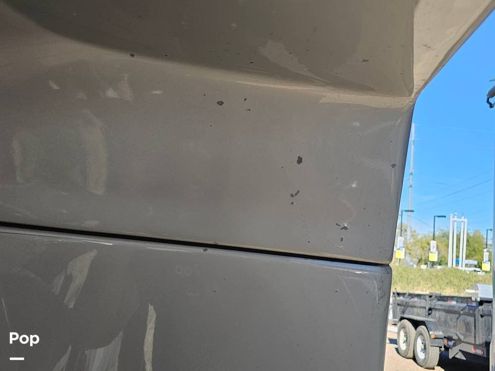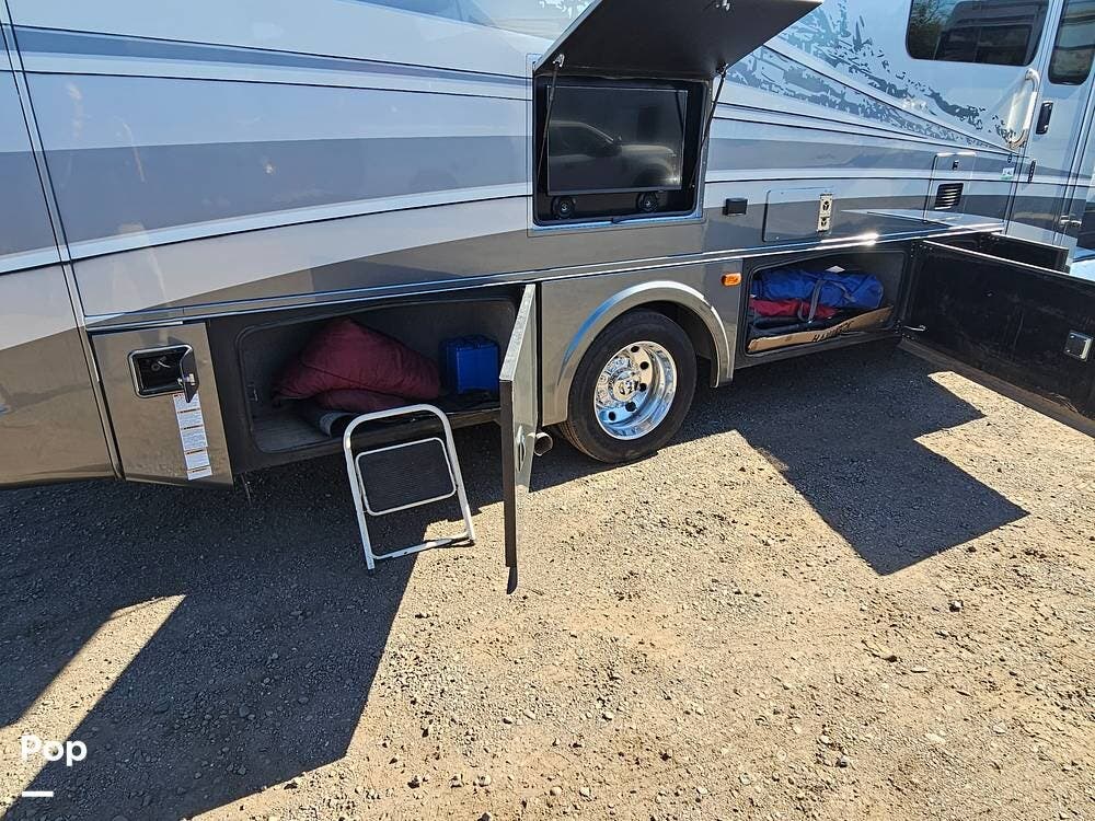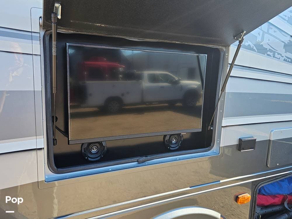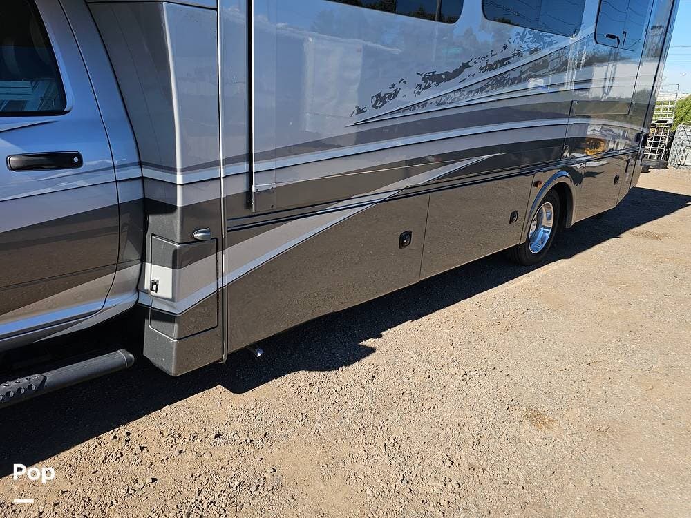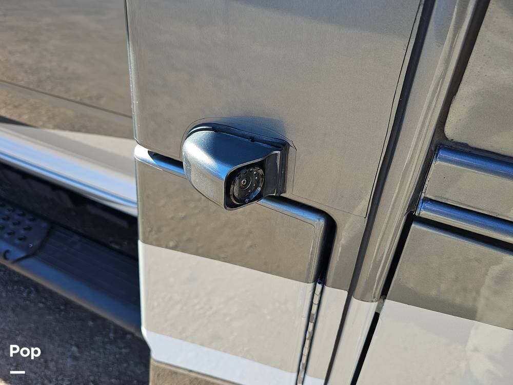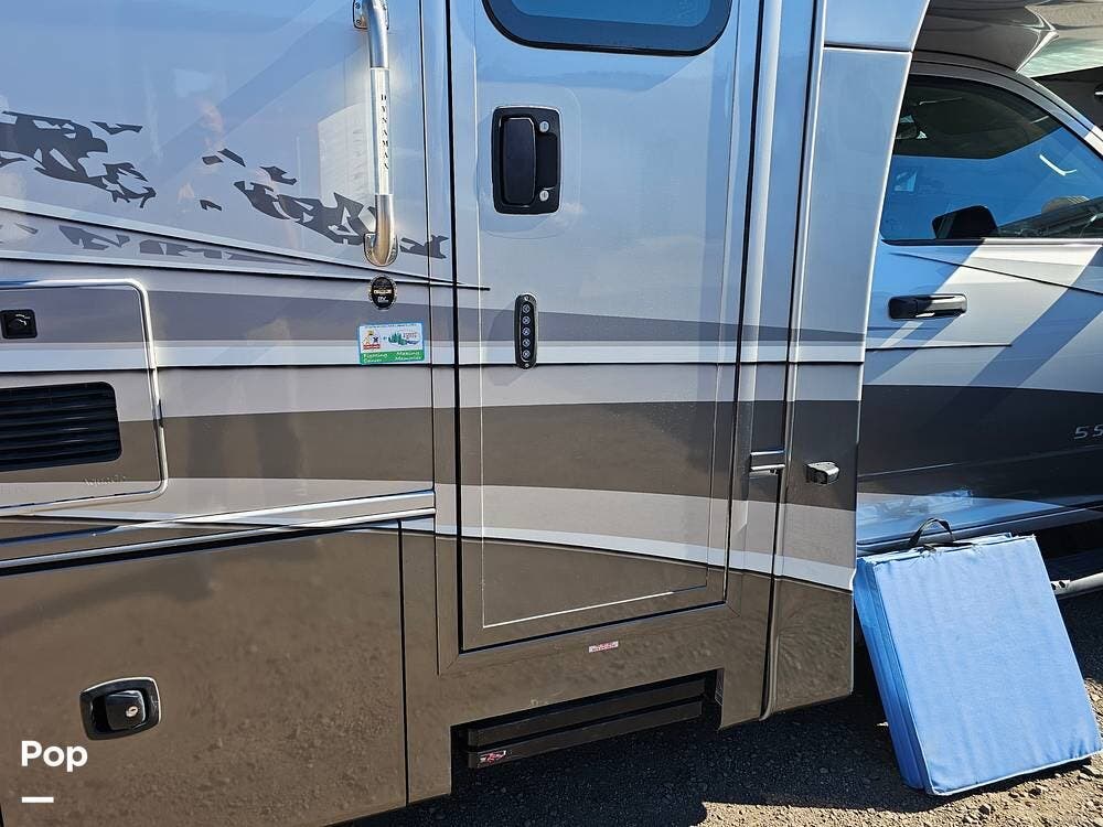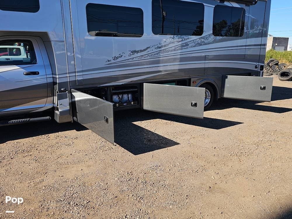 It also features two air conditioners, full-body paint, a one-piece fiberglass roof, a Cummins turbo diesel, large side-hinged exterior storage, and a 10,000-lb hitch.