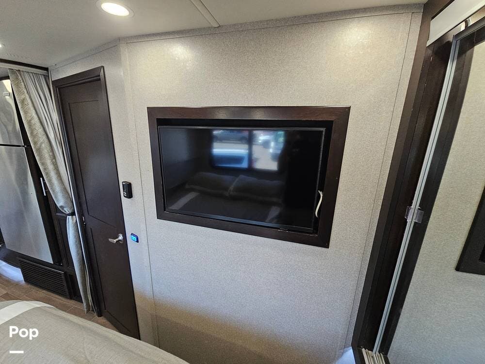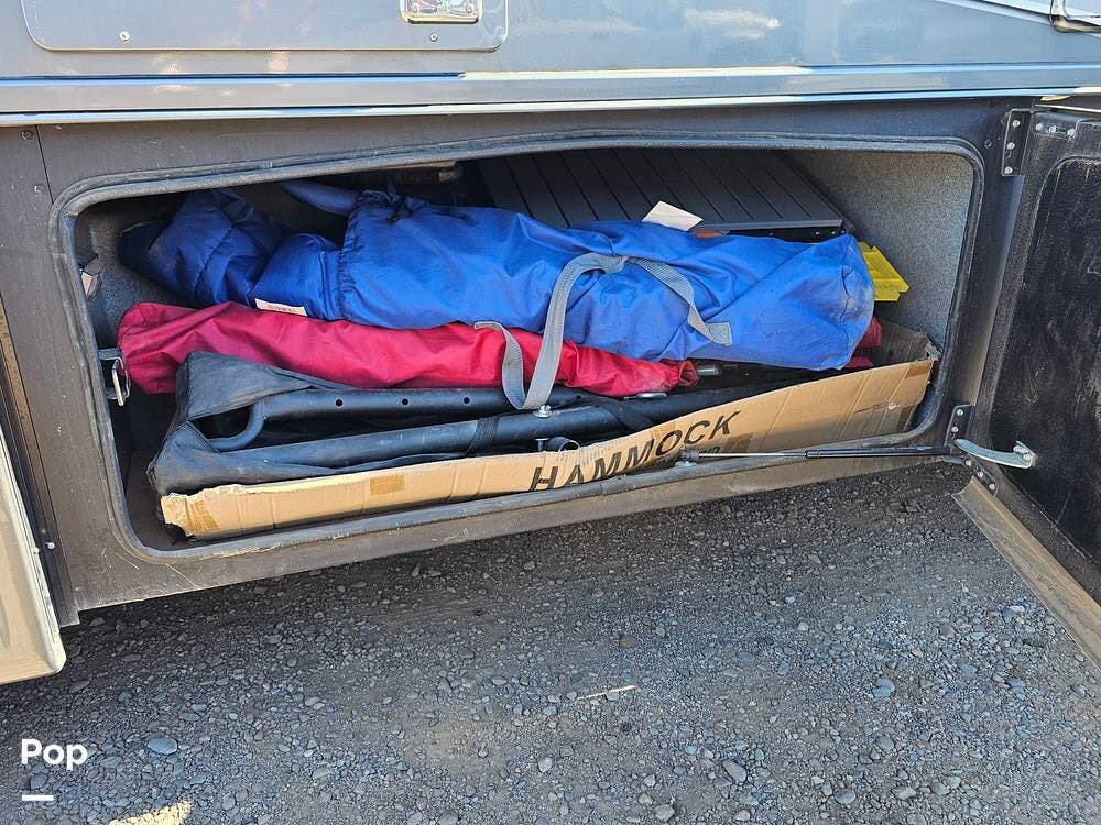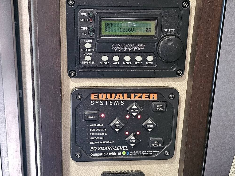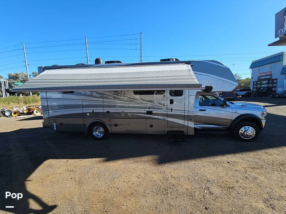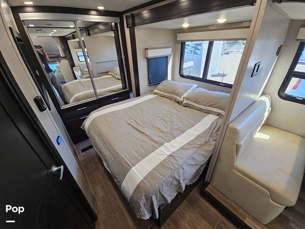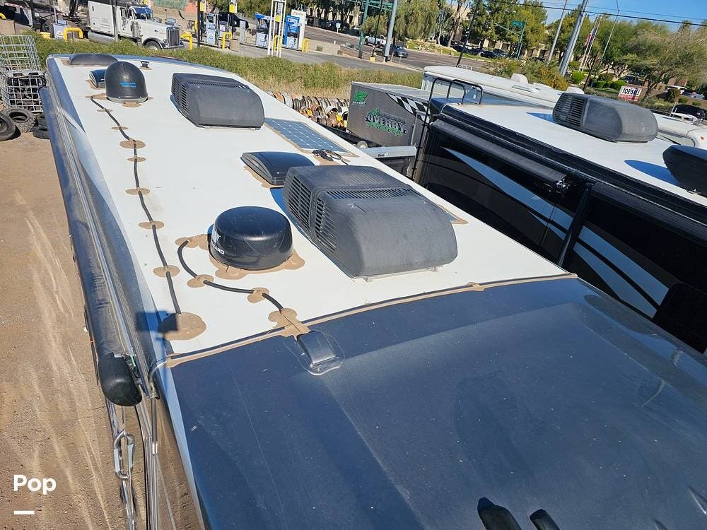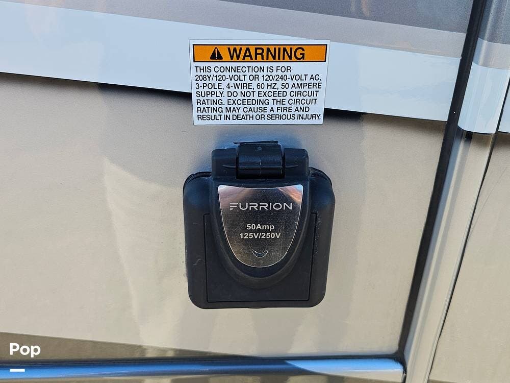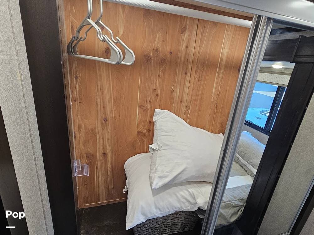 It also features two air conditioners, full-body paint, a one-piece fiberglass roof, a Cummins turbo diesel, large side-hinged exterior storage, and a 10,000-lb hitch.