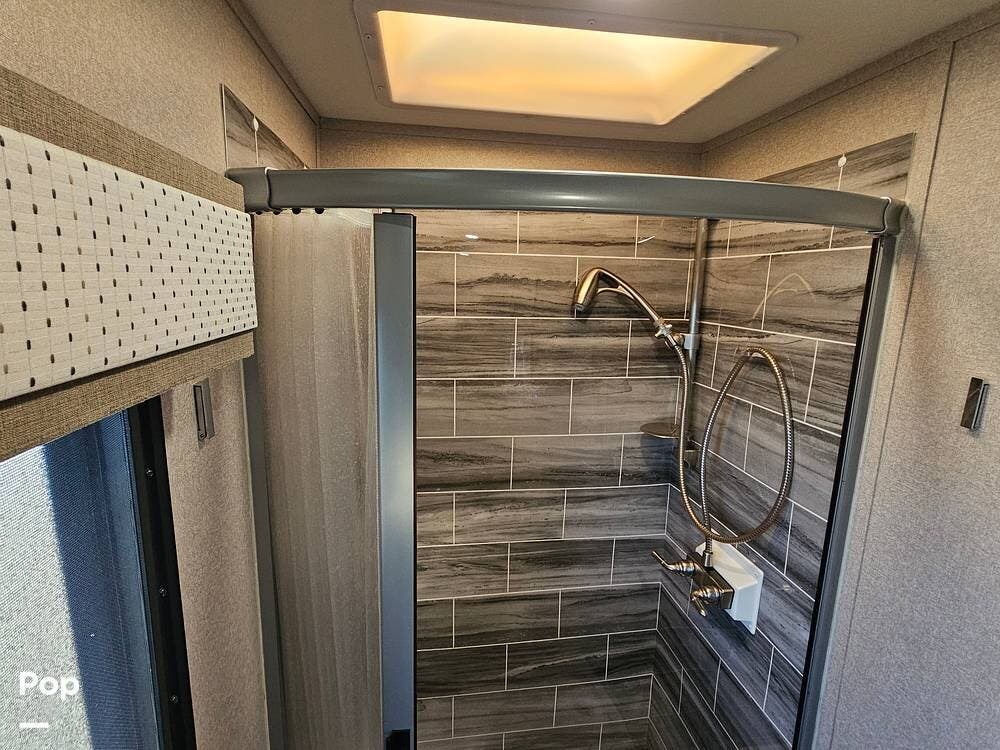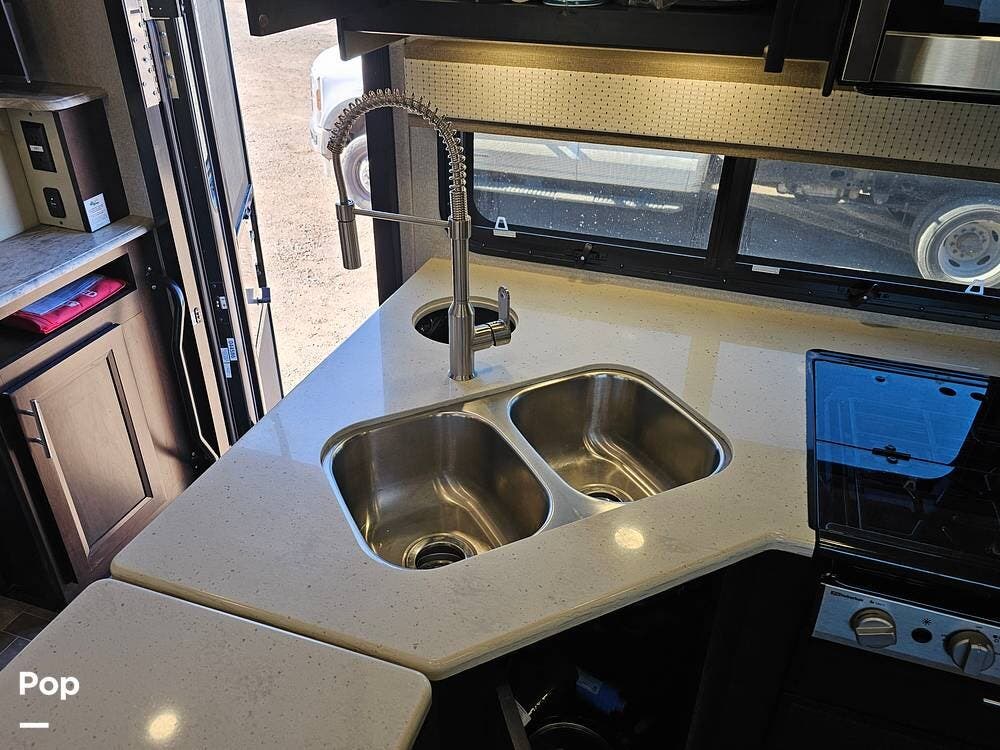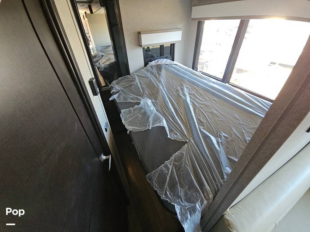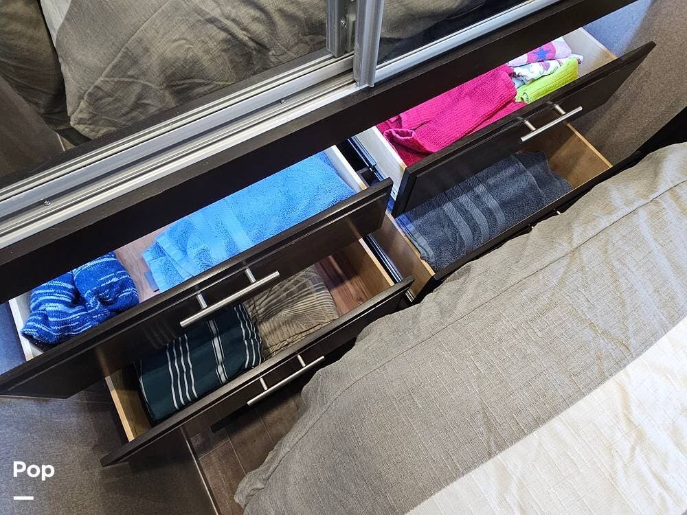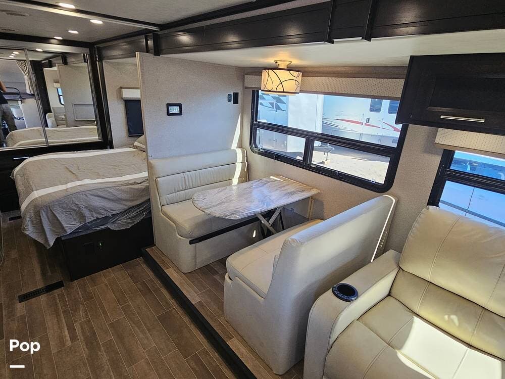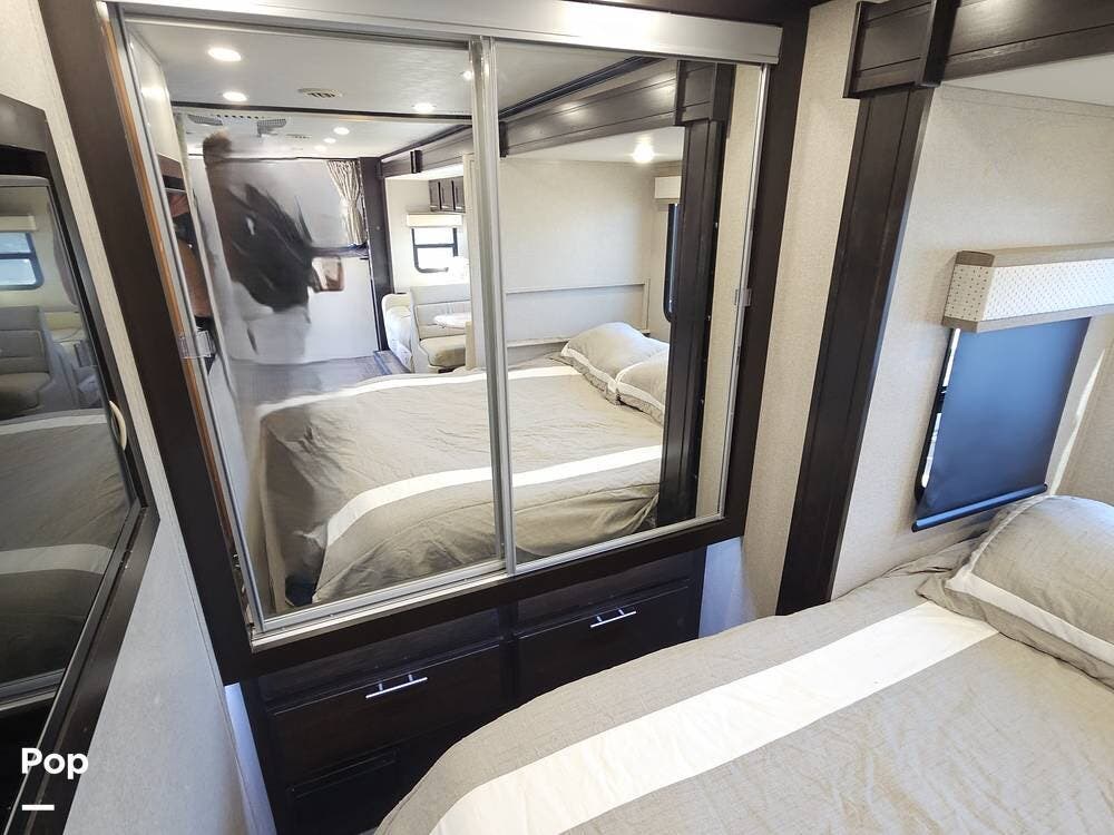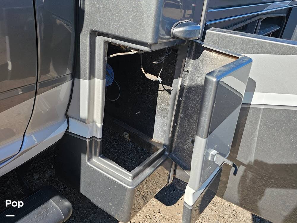 It also features two air conditioners, full-body paint, a one-piece fiberglass roof, a Cummins turbo diesel, large side-hinged exterior storage, and a 10,000-lb hitch.