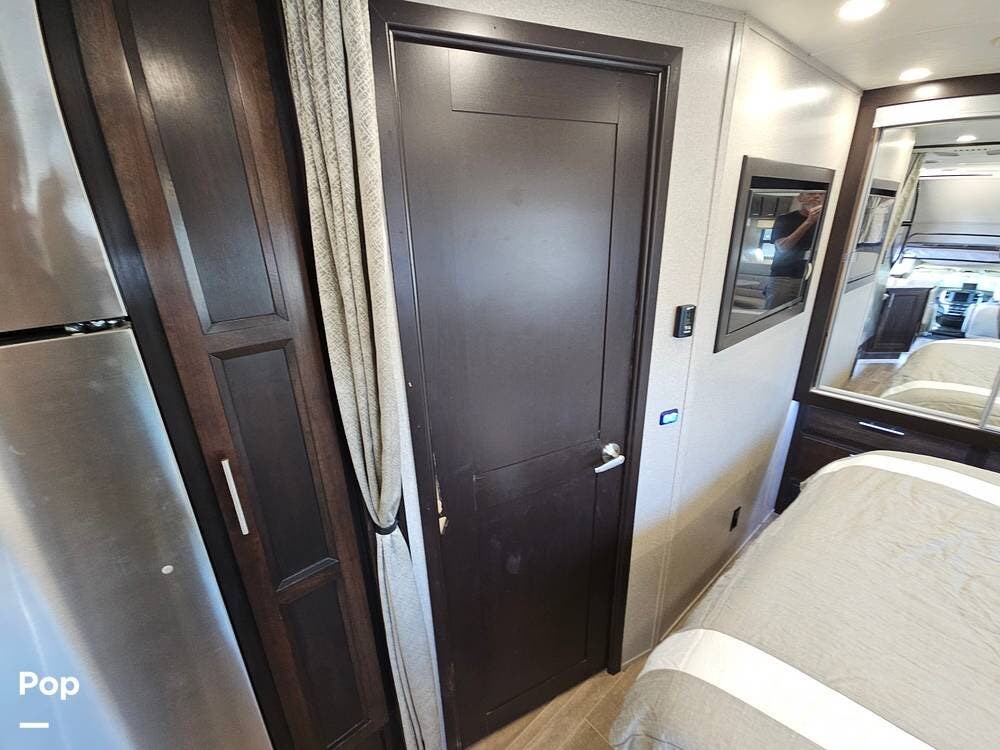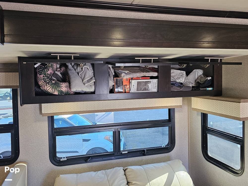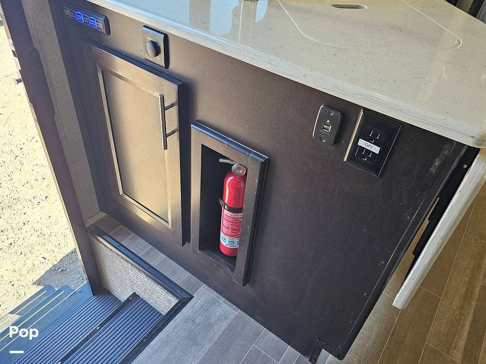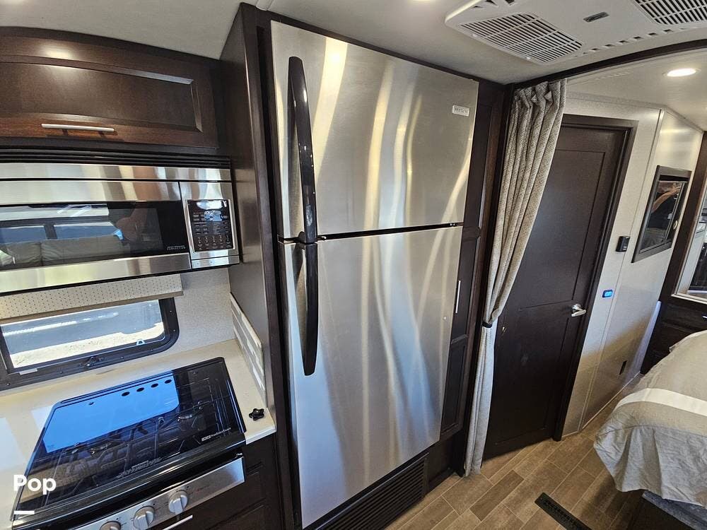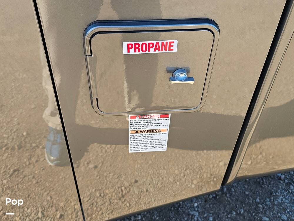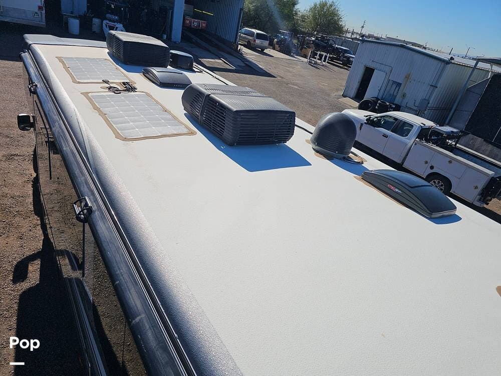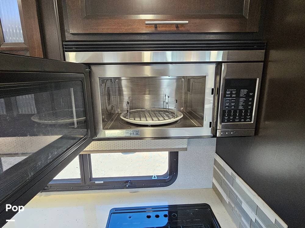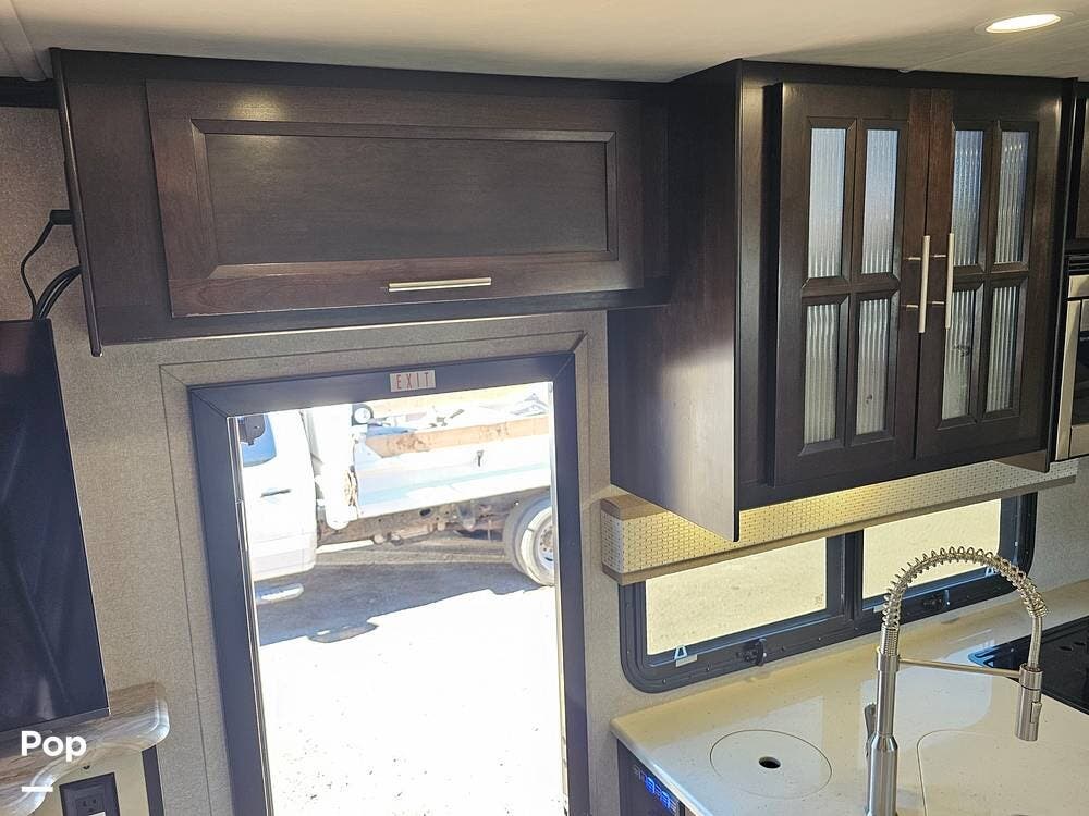 It also features two air conditioners, full-body paint, a one-piece fiberglass roof, a Cummins turbo diesel, large side-hinged exterior storage, and a 10,000-lb hitch.