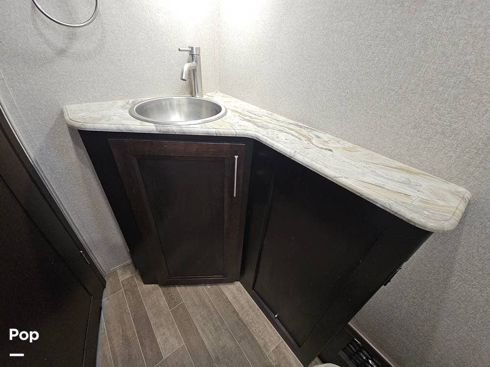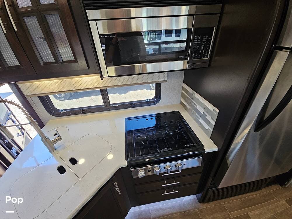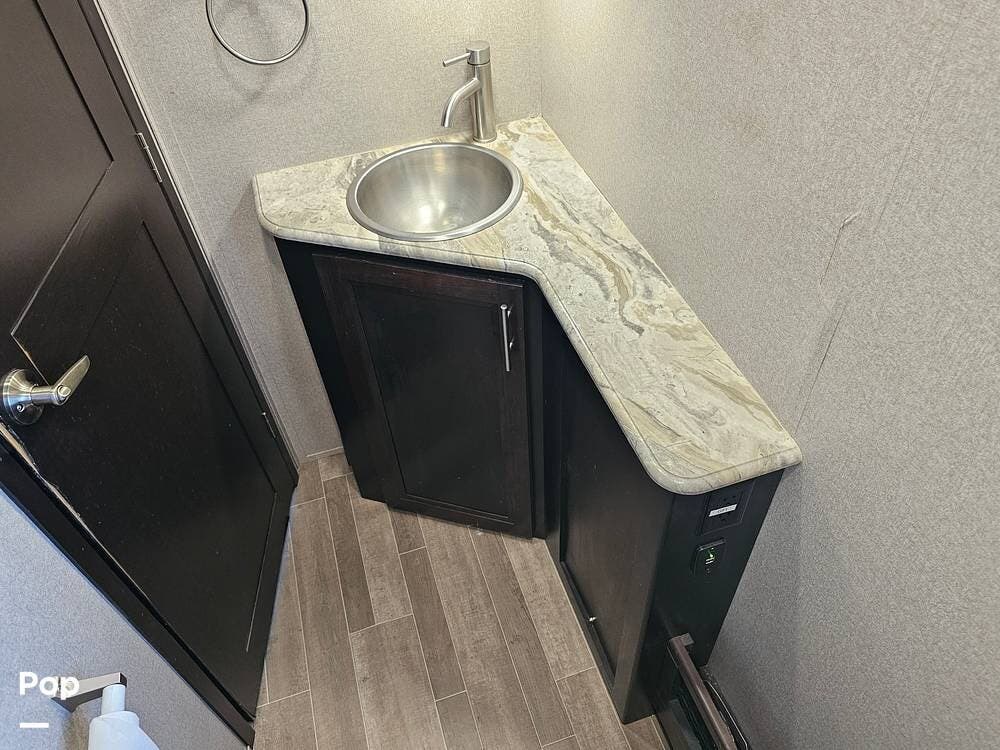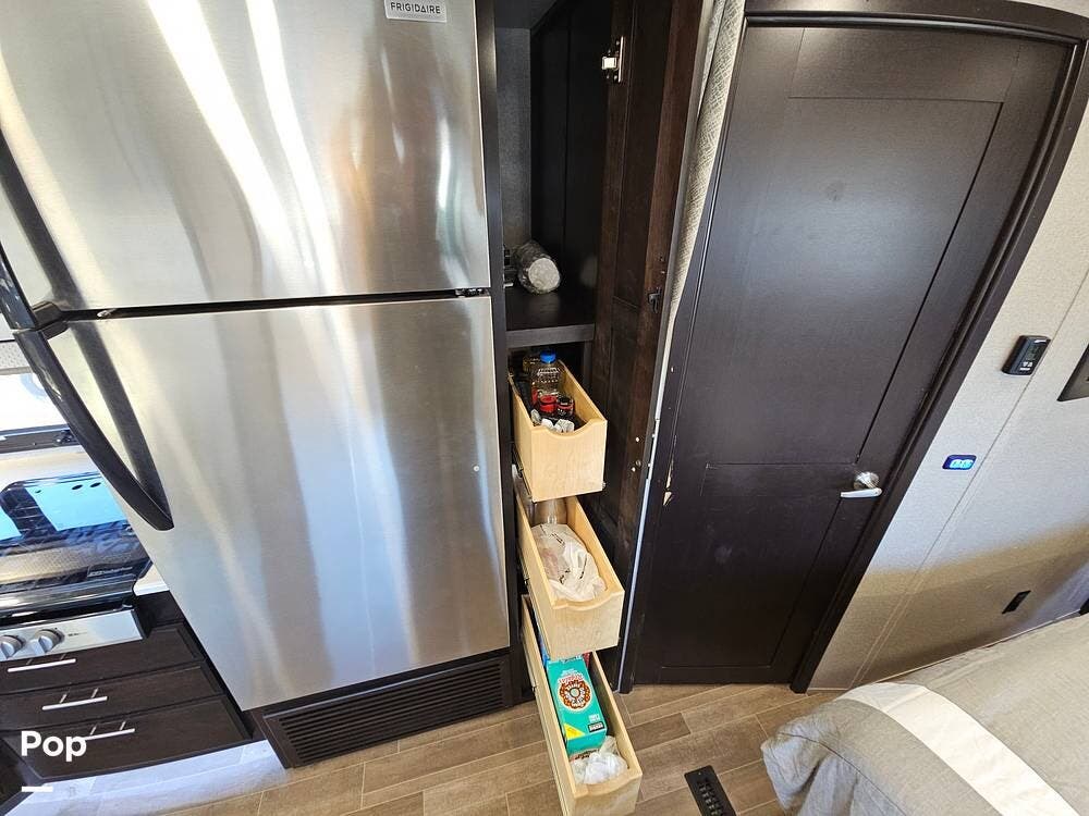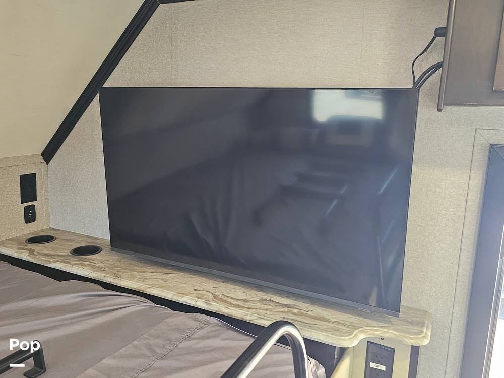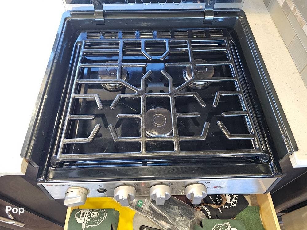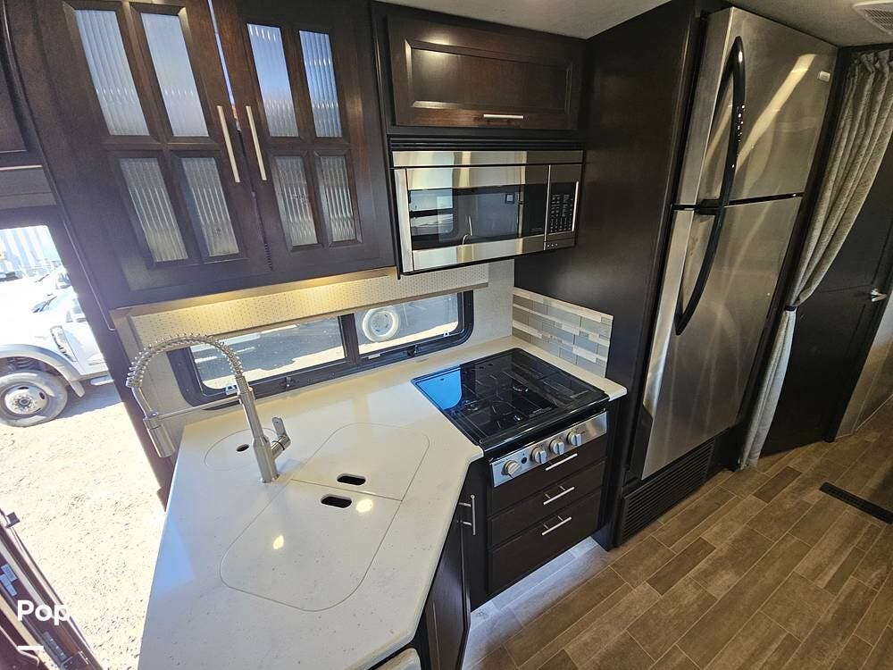 It also features two air conditioners, full-body paint, a one-piece fiberglass roof, a Cummins turbo diesel, large side-hinged exterior storage, and a 10,000-lb hitch.