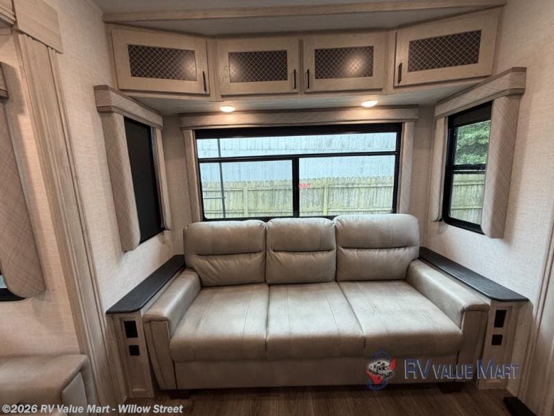 With any Tandara mid-profile fifth wheel by EAST TO WEST, you will experience comfort, luxury and loads of features others wish they had! Built with an aerodynamic fiberglass front cap with seamless high-visibility LED lights and a marine-grade 10" LED hitch light above the 2" rear towing and accessory hitch, MORRyde CRE 3000 suspension, and BAL automatic leveling system, your drive and your setup at the campsite will be enjoyable with all these upgrades and conveniences. The interior is something to boast about with solid-surface kitchen countertops, Artisan maple interior décor, a Furrion HDMI/AM/FM Bluetooth entertainment system with sound bar speakers, Slow Rise roller shades, and LED motion-sensor lights in the bathroom hallway and bedroom closets. The marine-grade woven PVC flooring in the flush-floor slide outs and the vinyl flooring in the main areas offer durability for years of use. There is so much more to enjoy, so take a look and choose your favorite Tandara!