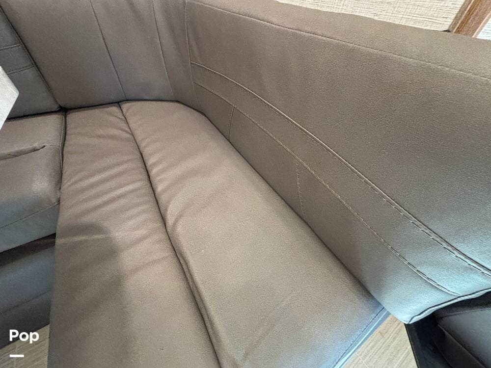 She can sleep up to six with a cab-over bunk, dinette sleeper area, queen-sized bed, and a large slide-out that opens up the living area nicely.