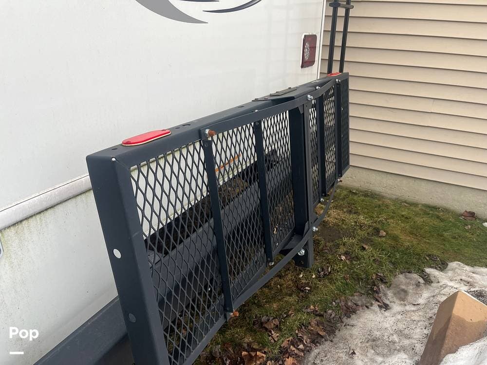 The exterior features a large awning, outdoor TV, outdoor speakers, and plenty of storage space for all your gear.