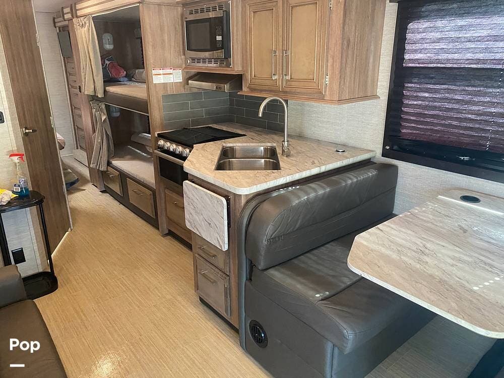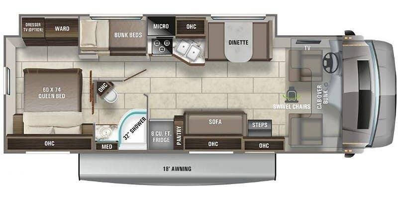 The kids are bound to argue about who gets to sleep in the overcab bed or the two bunks in this 2021 Odyssey 31F Class C motorhome.