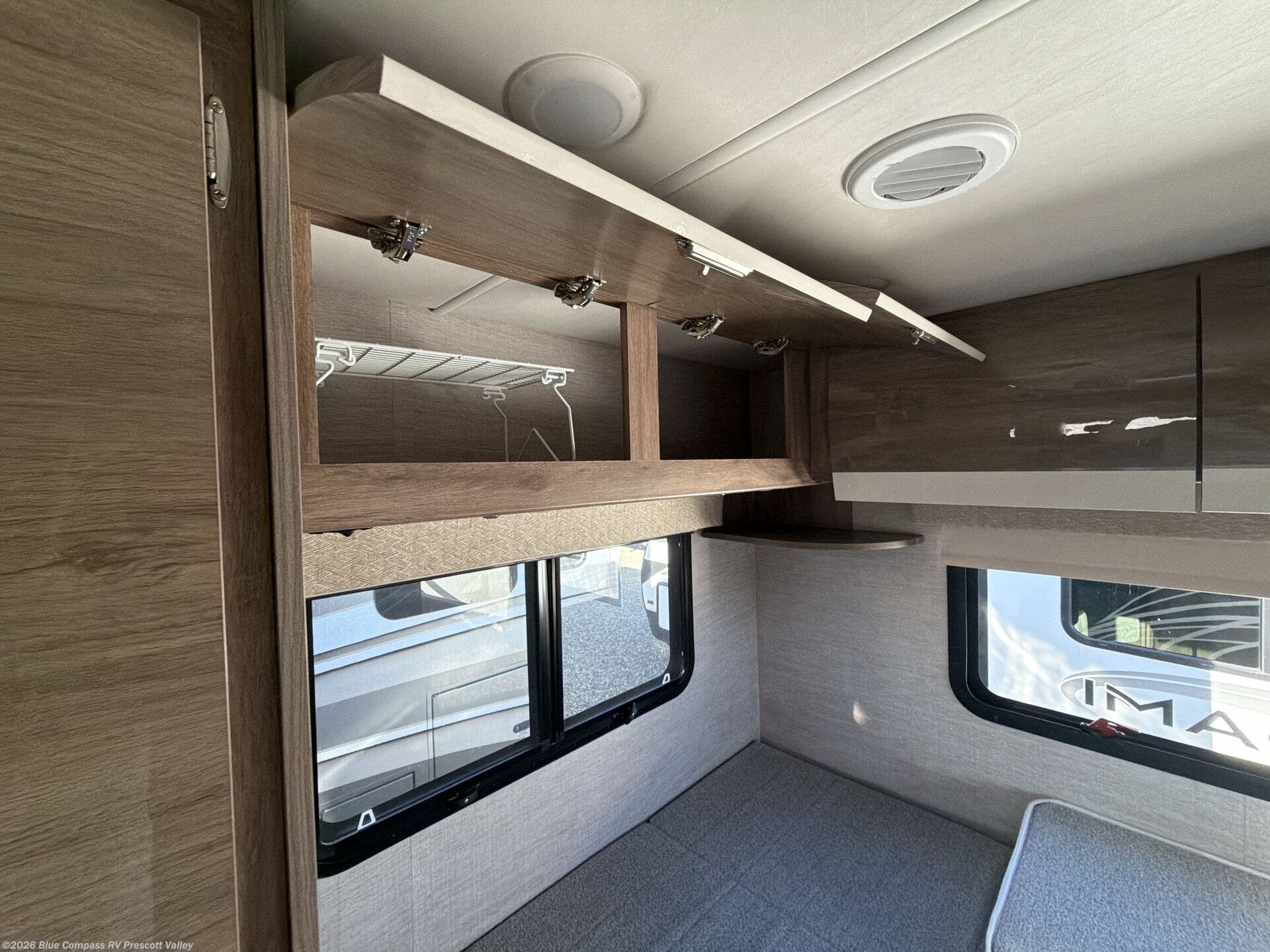 You and your spouse will love the space provided in between the rear twin beds as you load up your belongings in the overhead cabinets and easily access the full bathroom at night. The sofa slide offers a space to relax and watch the LED TV as well as a guest can sleep here. The cab-over bunk provides two more sleeping spaces or choose the B+ front cap option if that isn't needed. And someone can make their famous camping meals using the convection microwave or two-burner drop-in cooktop, and store leftovers in the 6 cu. ft. refrigerator.