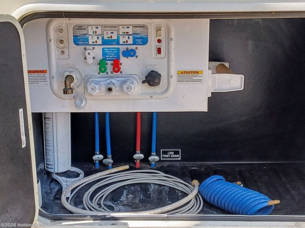 This two slide coach offers a spacious living and kitchen area as well as a rear bedroom that you can pull the divider curtain closed to get privacy when the grandkids join you on your adventure. They can sleep on the furniture once folded down for the evening, or the drop down overhead bunk. The bedroom gives you a walk-around queen-size bed, dual wardrobes and a dresser, while your guests can utilize the overhead cabinets for their things. The cook will love the galley kitchen with everything at their fingertips including the residential-size microwave for those quick meals. You will find an LED TV inside and outside to watch, a booth dinette to dine at and play games, and a 23' electric awning to relax under when you aren't inside.