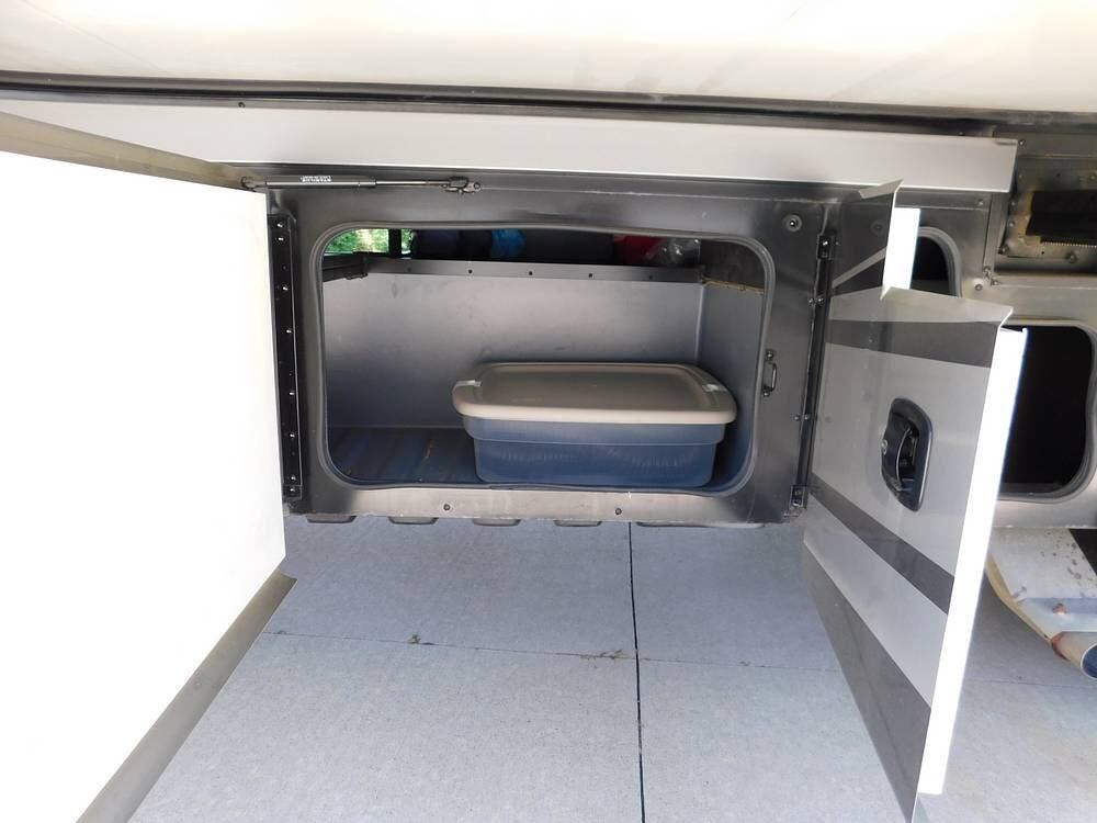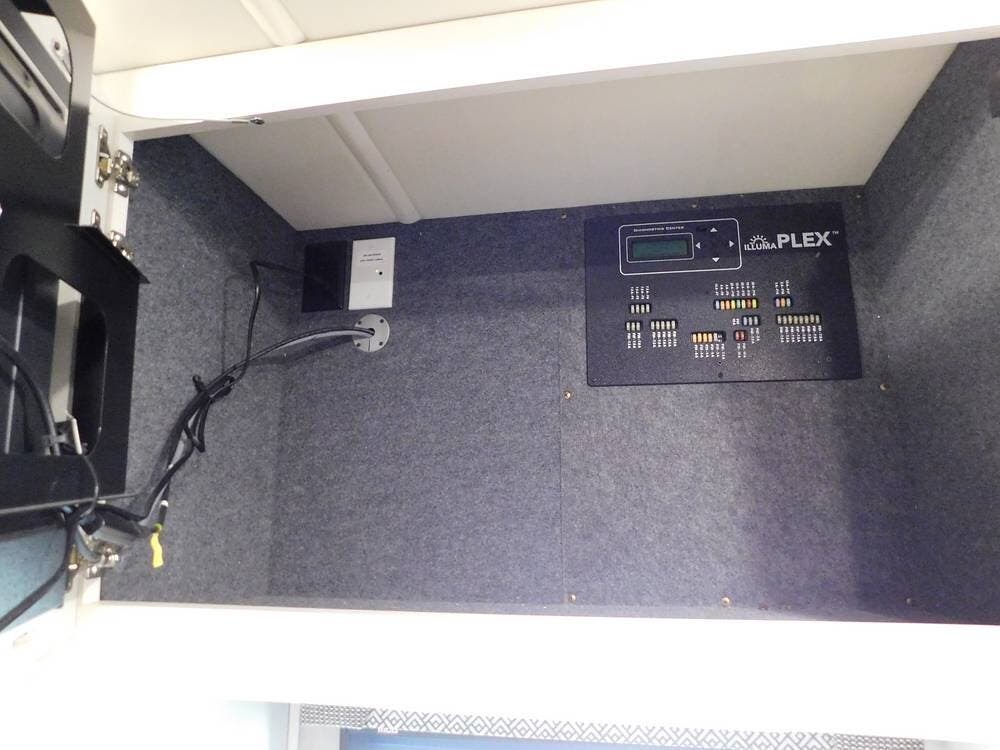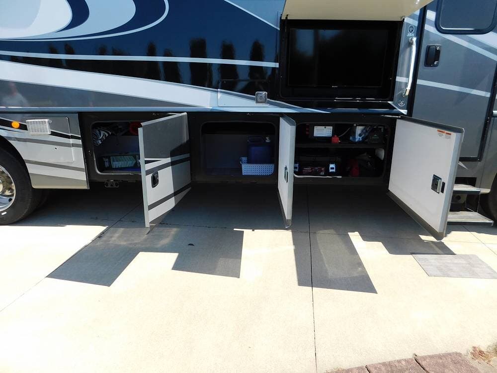 Climate control is maintained with dual air conditioning units and a powerful furnace, ensuring comfort in any season. LED lighting throughout the coach creates a warm ambiance while being energy efficient.
