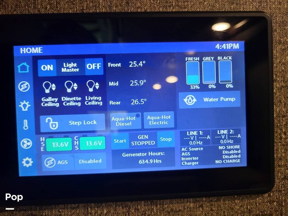 Built for both luxury and capability, the coach is equipped with an 8.0kW Onan generator, roof-mounted solar, and a roof-mounted water tank designed for extended off-grid stays. Exterior amenities include an entertainment center for enjoying time outdoors, while the air-ride suspension ensures a quiet, smooth ride on every journey.