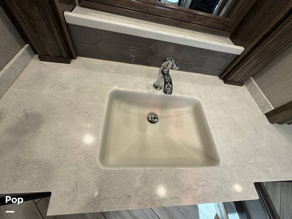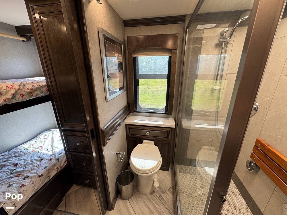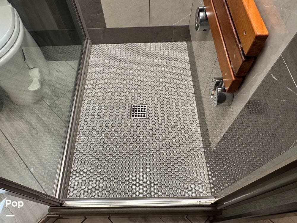 For everyone's comfort while on the go, there is a convenient half-bath, mid-coach for guests, plus a spacious master bath with large glass enclosed shower.