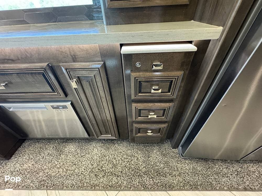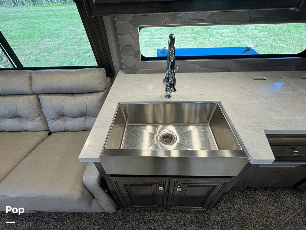 From the 6-Way power and heated Captain's Seats with full swivel capability, the digital instrument panel, and color backup monitor, to the stately Master Suite with Encore Series King Bed (Articulating), LED TV, and stacked washer and dryer, this 44 ft coach screams luxury and functionality.