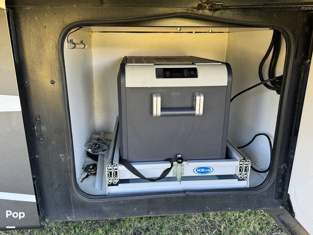 There is full pass-through basement storage with LED lighting and a Full-Bay 90" Slide-Out Trays.