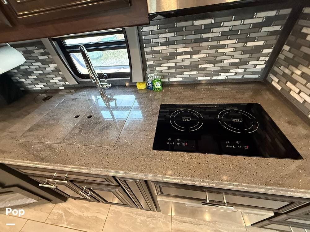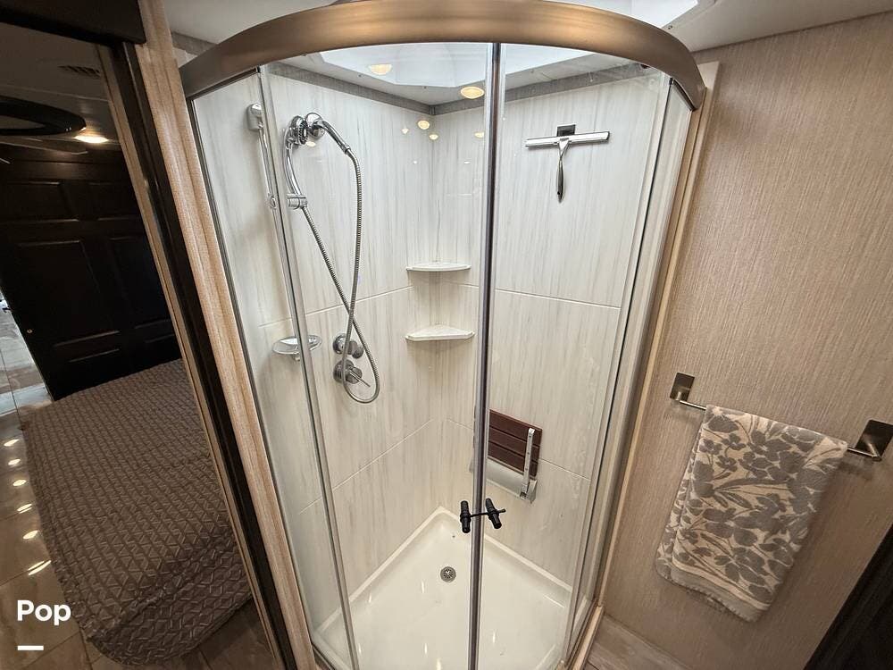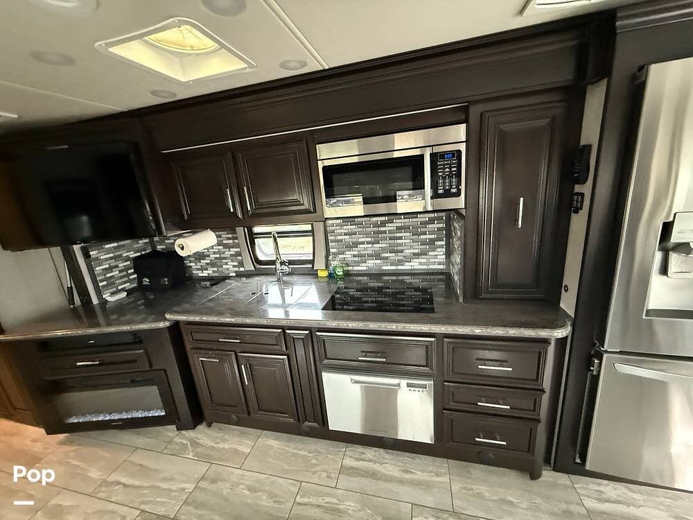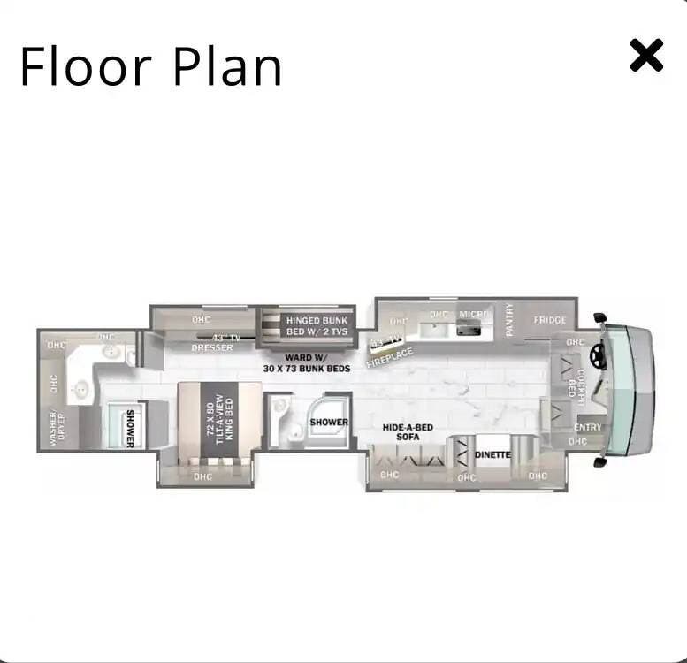 Every inch of this special coach is designed with craftsmanship and elegance -- from the polished porcelain tile flooring and high-gloss cabinetry to the theater seating and fireplace that make every evening cozy. Modern tech and safety come standard, too, with collision mitigation, 360 camera system, and advanced touch-screen controls.