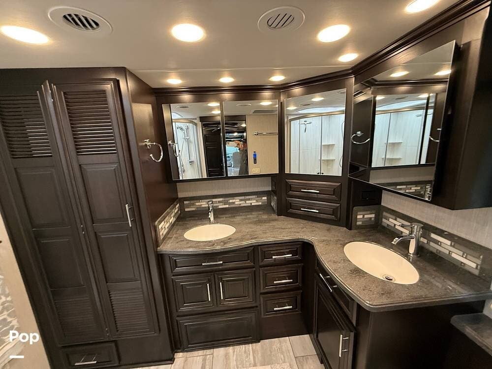 Inside, this coach feels more like a high-end residence than an RV. The spacious quad-slide layout offers incredible room to relax and entertain.