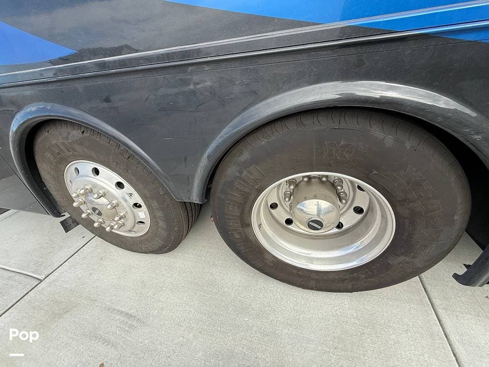 This stunning coach rides on a Freightliner XCR chassis and is powered by a 450HP Cummins ISL9 engine, giving you unmatched performance whether you're cruising through the mountains or gliding down the open highway.