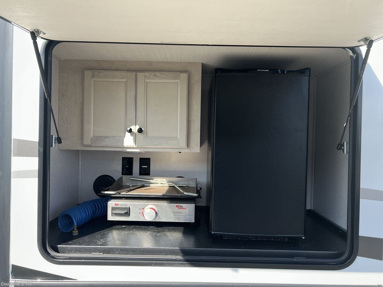 Automatic Leveling Jacks, Black Tank Flush, Detachable Power Cord, Enclosed Underbelly, Exterior Refrigerator, Fiberglass Sidewalls, Griddle, Ladder, Pass Thru Storage, Power Awning, Roof Vent, Screen Door, Second Roof A/C, Slam Latch Baggage Doors, Slideout -