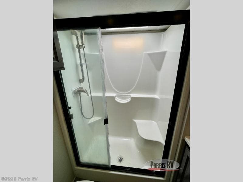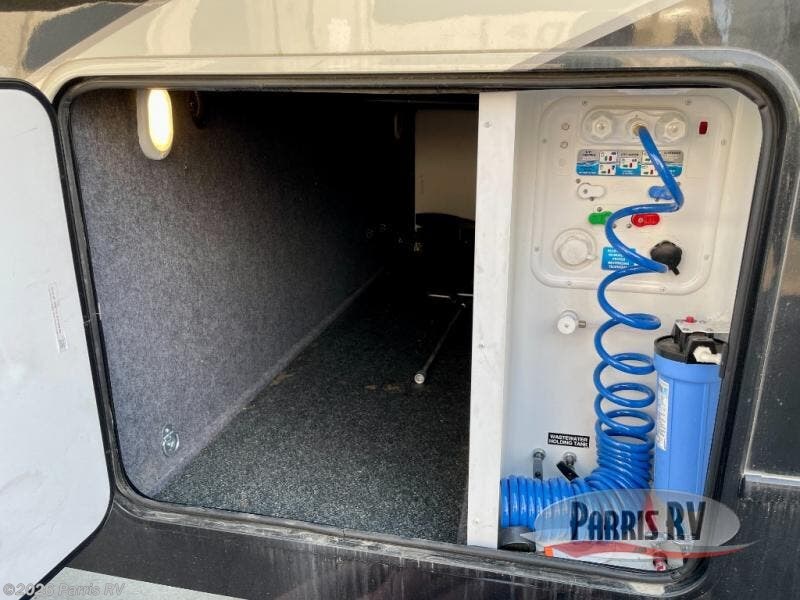 If you enjoy high-class furnishings and amenities that make you feel right at home, you'll want to own the Forest River Cardinal Luxury fifth wheel! This brand has so much to offer with its LCI Next Generation frame technology, "Z" frame design, hydraulic slide system, underbelly armor, app-controlled command center, heated exterior water and convenience center, and Girard tankless water heater. The enormous drop-frame pass-through storage compartment has forced-air heat so that your gear won't freeze while it's being stored, and the exterior entertainment center has a 32" TV and sound bar so that you can take movie night to the next level. The interior is absolutely loaded with comfortable amenities, like powered theater seats with recline and massage and a ceiling fan, and you will always find great convenience from the central vacuum system.