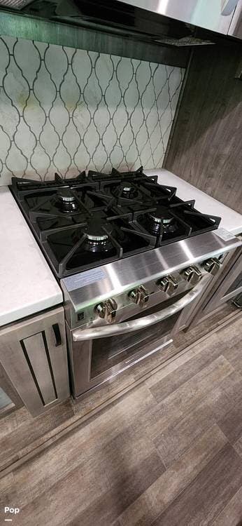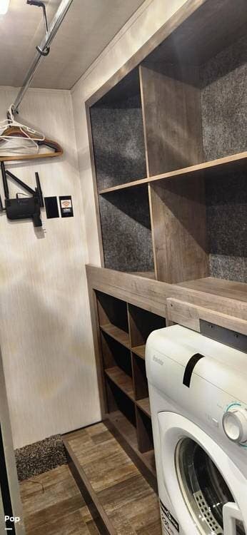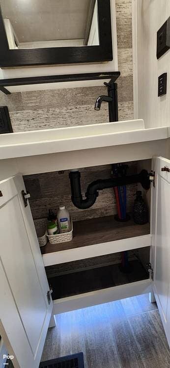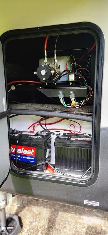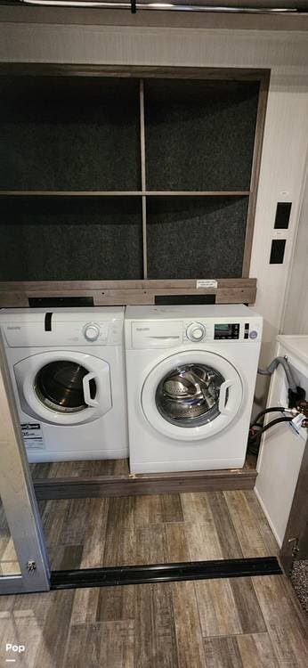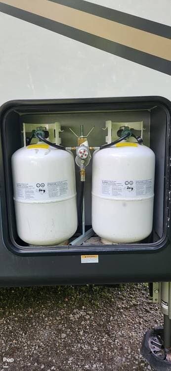 This particular unit is set up for boondocking with its generator, washer and dryer, ample-sized propane tanks, and extended seasons, which are possible with the sealed belly.