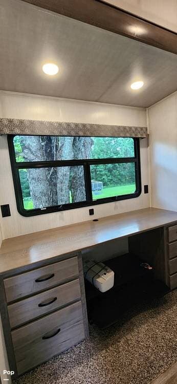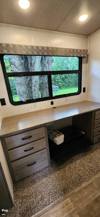 You work away from home, road warriors. You have found one of the highly prized 2021 Cedar Creek 377OFs with a home office layout.