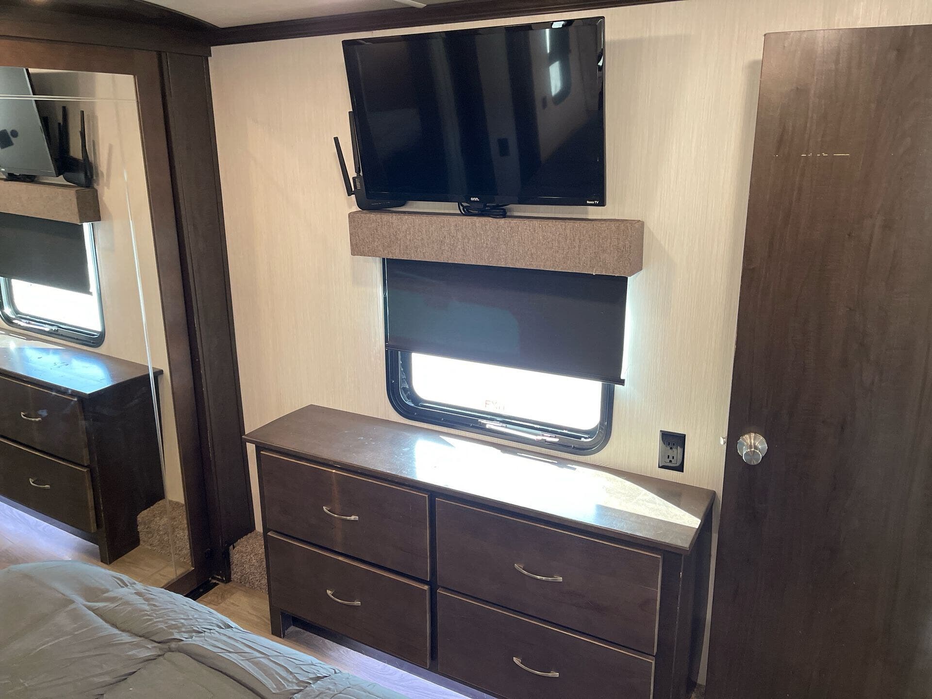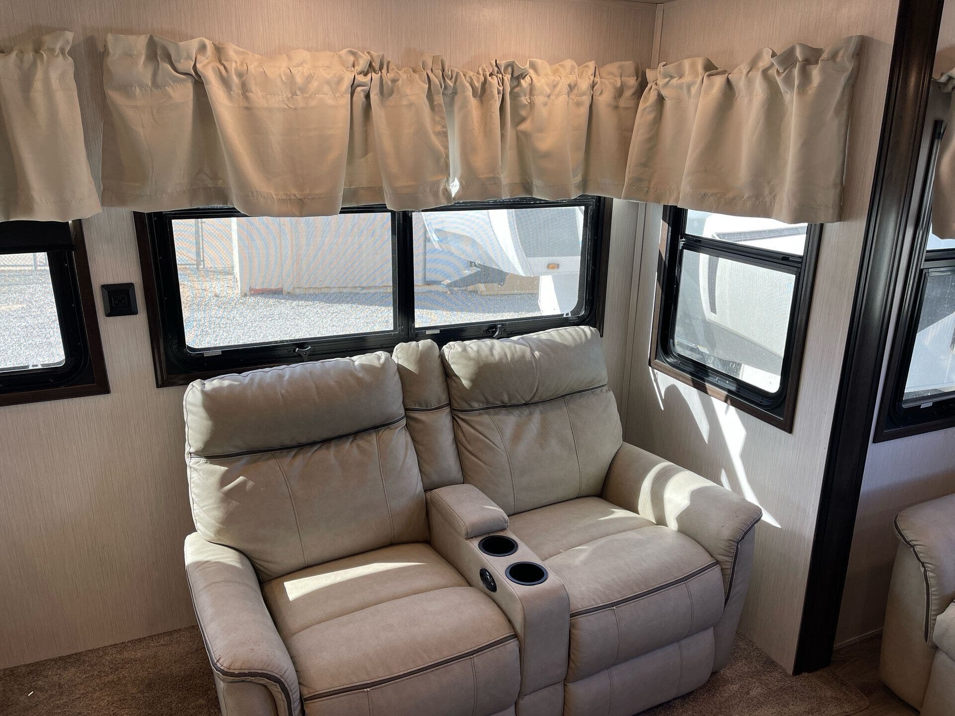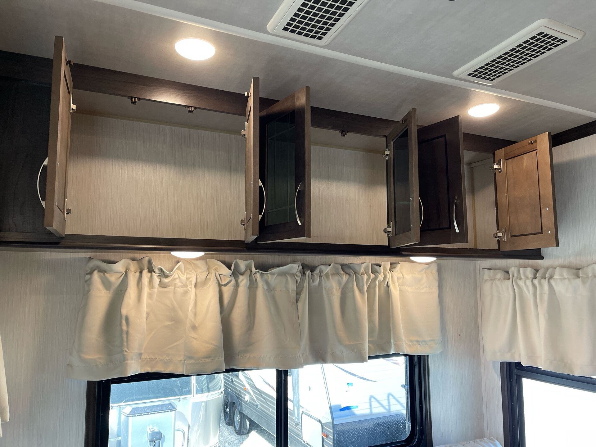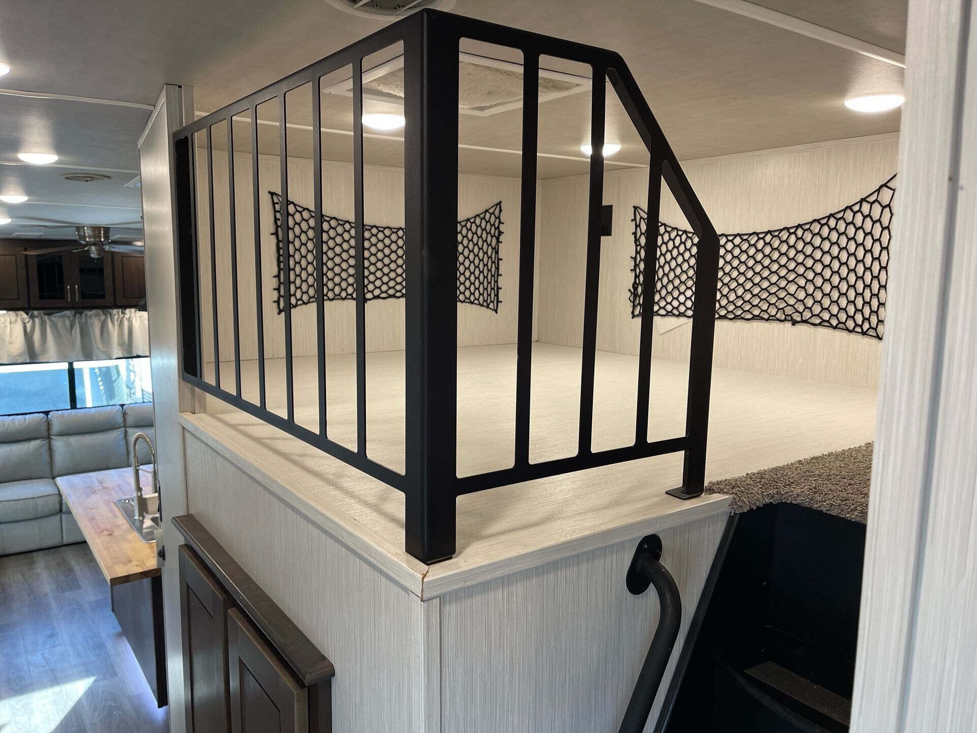 The 2021 Cedar Creek Silverback 37MBH is a spacious and upscale fifth-wheel built for comfort, durability, and extended travel. With an overall length near 41 feet, this model provides generous living space without feeling bulky. The floorplan centers around a mid-bunk room (MBH) layout, making it ideal for families, guests, or longer stays on the road. In the rear of the coach, you’ll find a versatile bunk area that includes a set of bunks plus a convertible seating/sleeping space — perfect for kids or additional guests.
