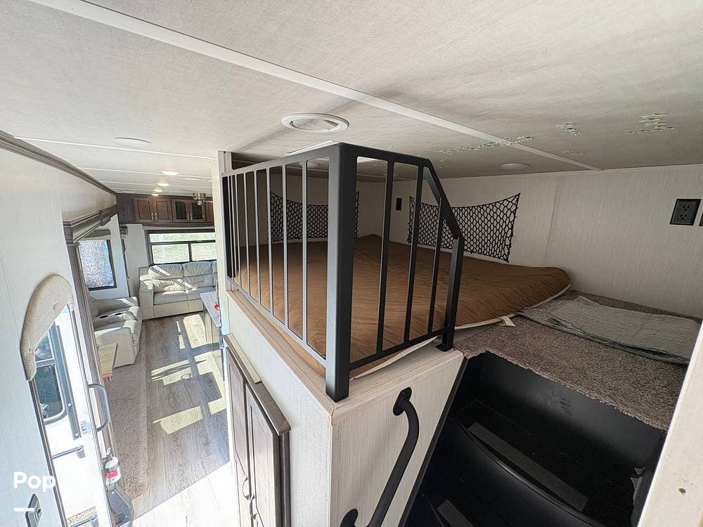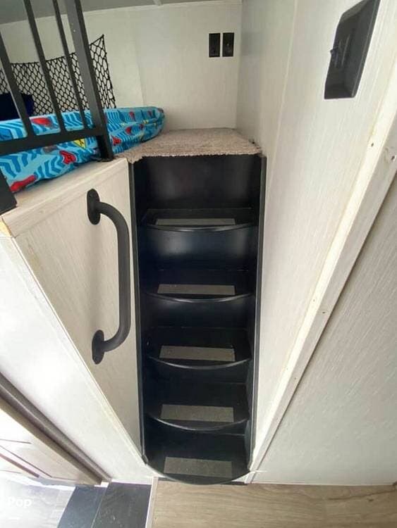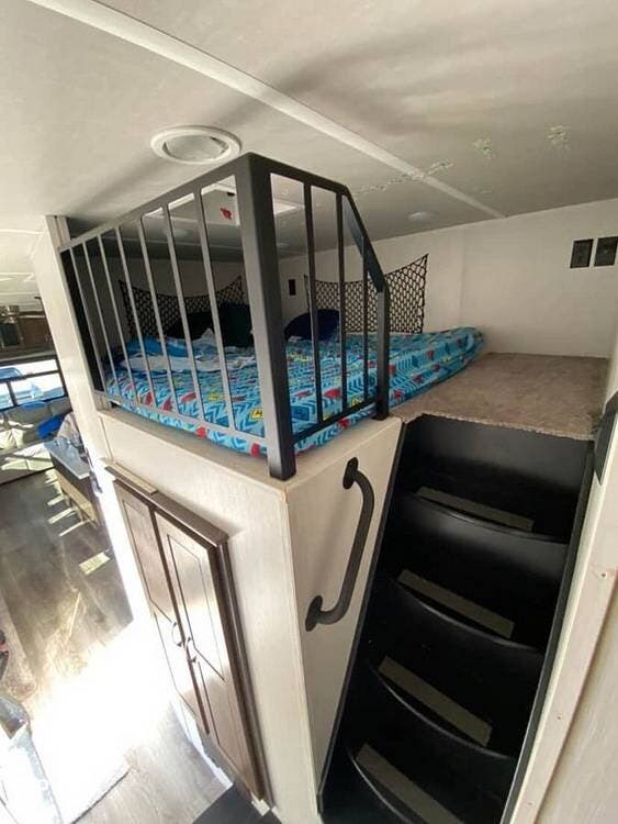 The loft adds an entirely different dimension of space, with easy-climb stairs leading up to a comfortable full bed. It's the perfect tucked-away spot that makes every inch of this RV feel thoughtfully designed.