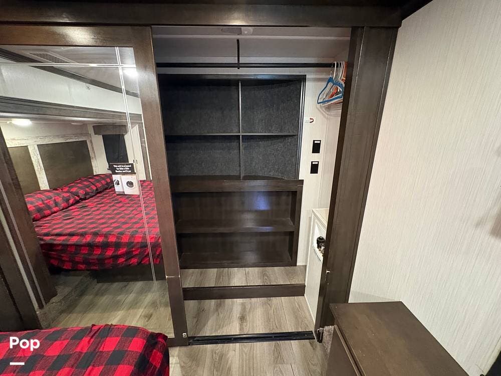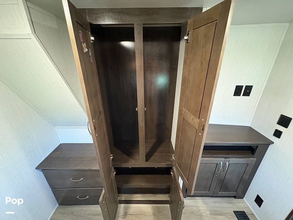 From the moment you step inside, it feels more like a luxury apartment than a camper. The master bedroom offers a true retreat at the end of the day, featuring a king-size bed, an oversized closet that actually holds everything you bring, and washer and dryer hookups that make long trips effortless.