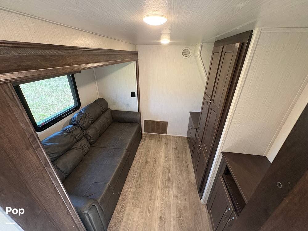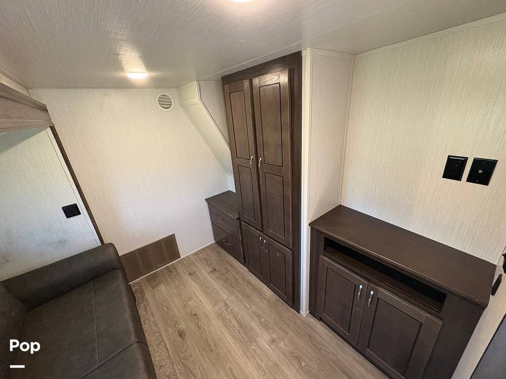 The bunk room offers even more flexibility, with a couch that converts into a full bed, along with drawers and wardrobe storage to keep everything organized and out of sight. Whether hosting guests or traveling with family, everyone has their own space to relax.