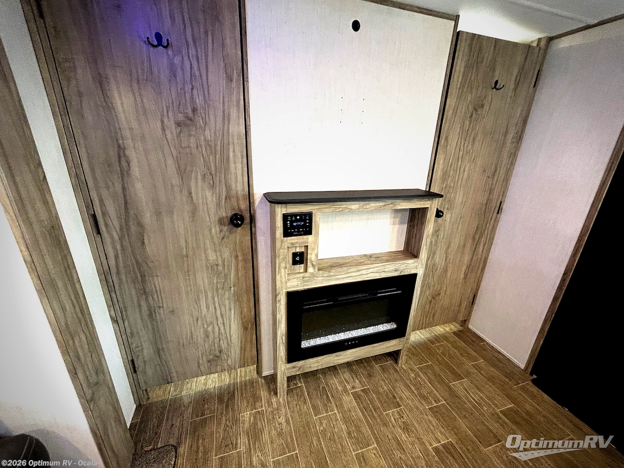 Spend your weekends with the whole family in the most popular multi-sleeper with this travel trailer! The dual entry doors make for a smooth flow of traffic in and out of the unit, plus one of the doors leads directly into the rear corner bathroom so you can get back to playing outdoors fast. The oversized U-shaped dinette is big enough for everyone to gather around at meal times and to play games. If mother nature is raining on your parade then you can relax on the jackknife sofa and enjoy the electric fireplace, just grab a snack from the large pantry and a drink from the 12V residential refrigerator.. If you're feeling brave then you can head outdoors and watch the rain poor down as you stay protected underneath the oversized 20' awning, plus there is a deluxe outside kitchen for you to cook while you watch the kids play when the sun is shining!
