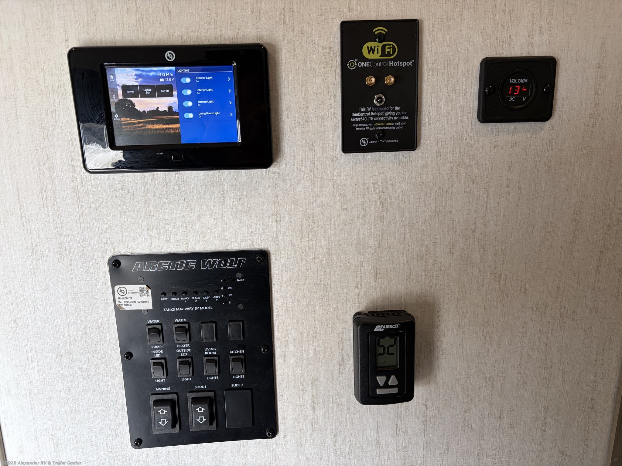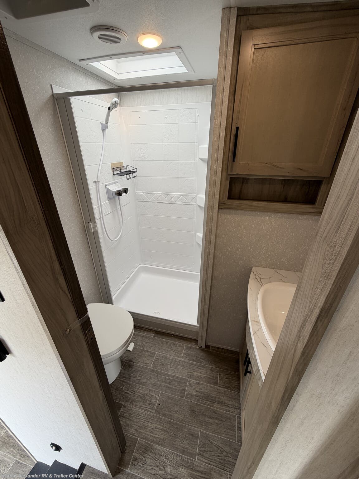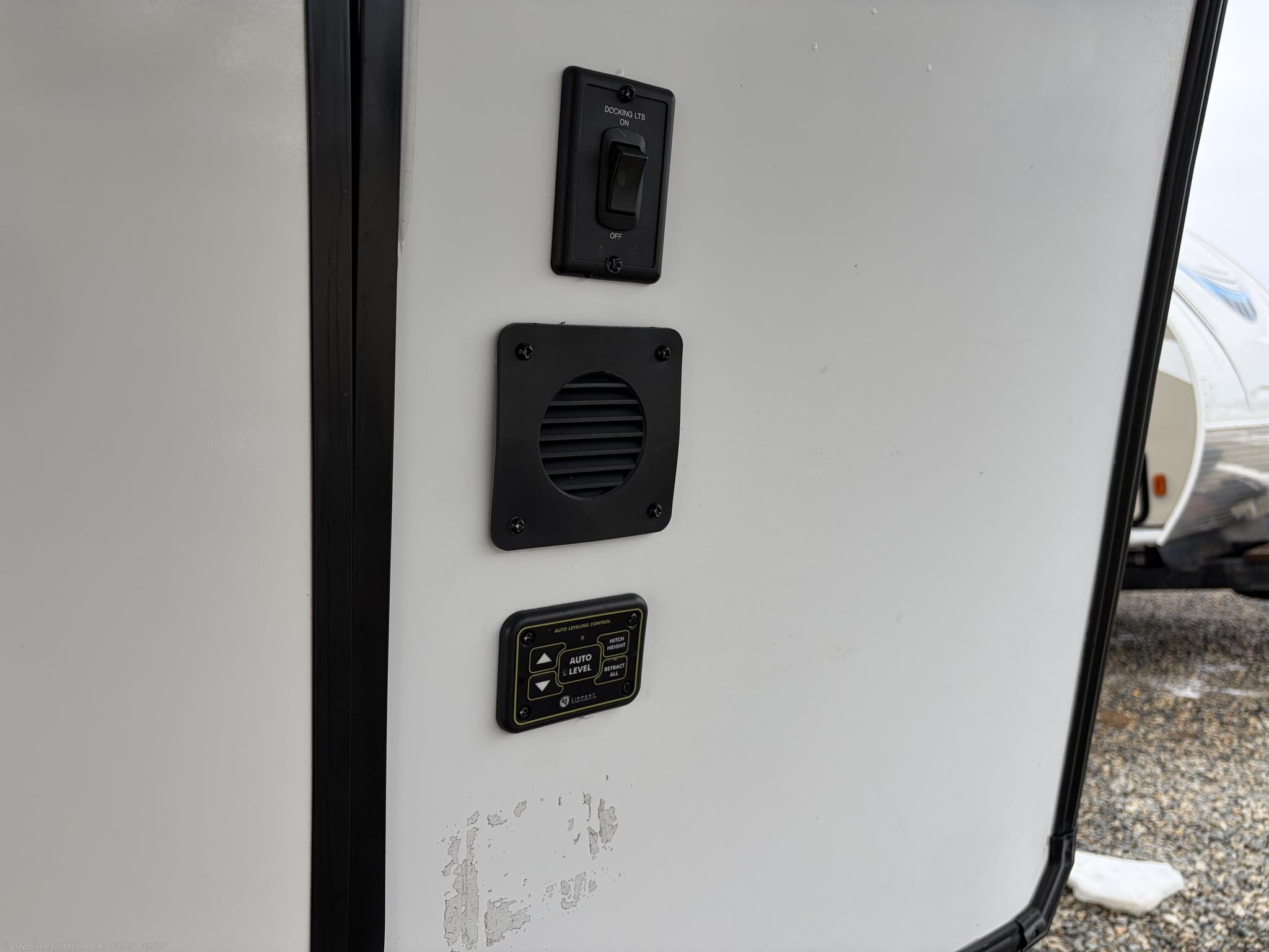 Automatic Leveling Jacks, Detachable Power Cord, Enclosed Underbelly, Exterior Speakers, External Shower, Fiberglass Sidewalls, Ladder, Outside Kitchen, Pass Thru Storage, Power Awning, Power Roof Vent, Roof Vent, Skylight, Slideout -