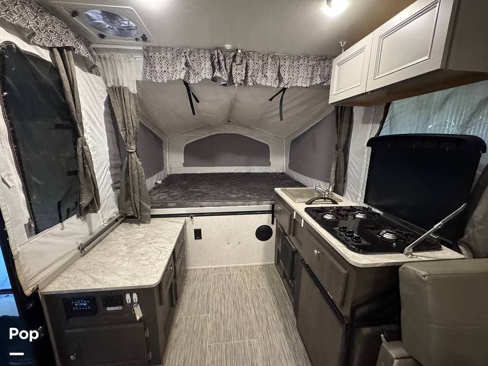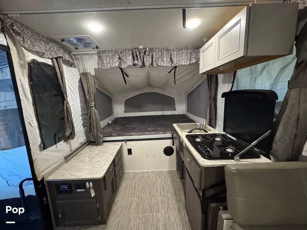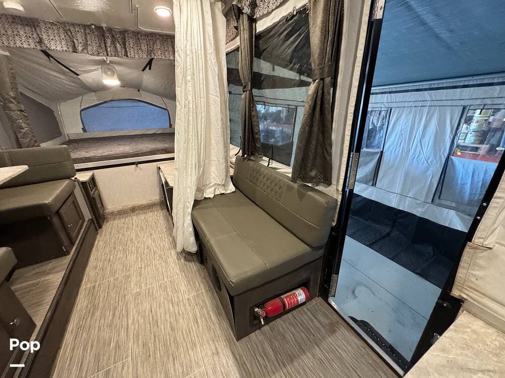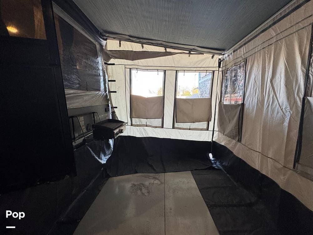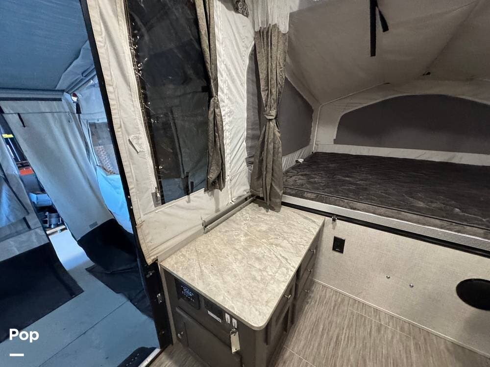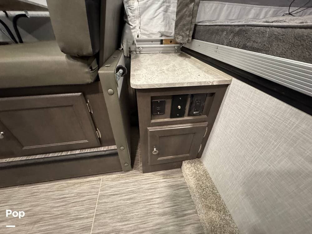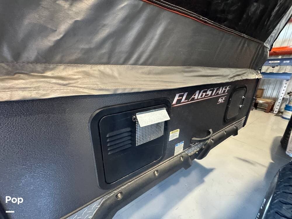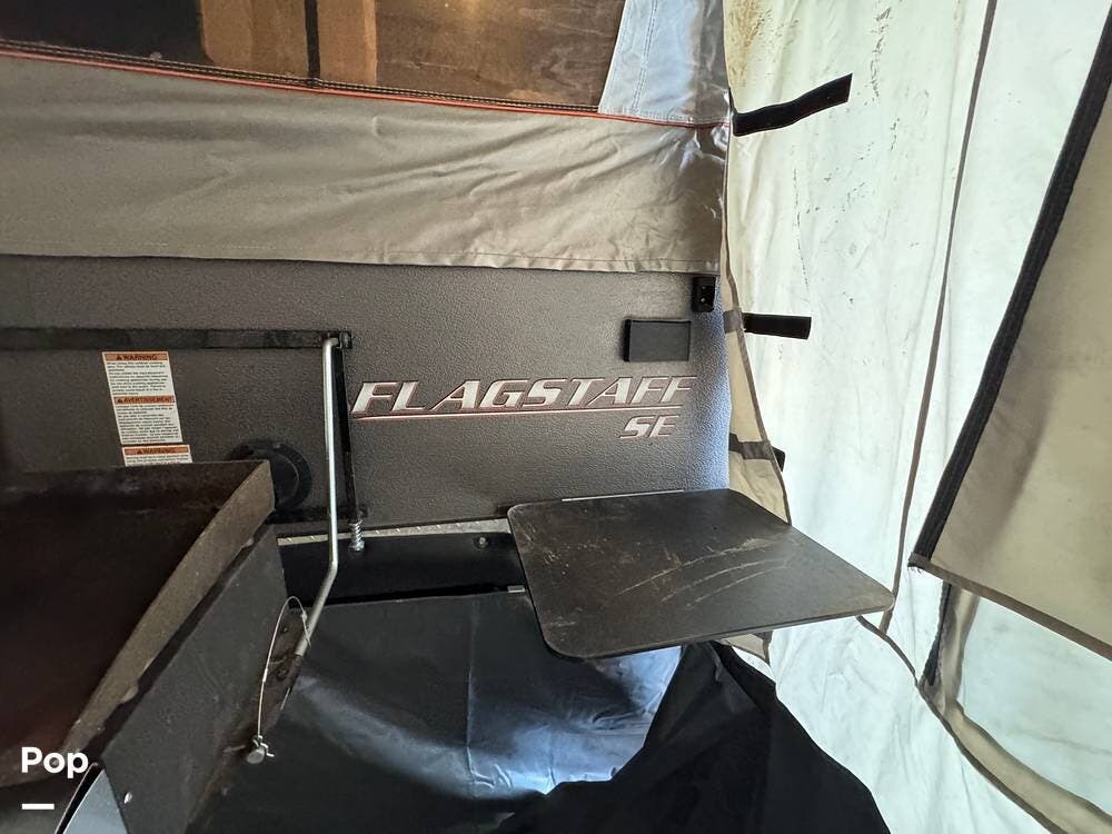 Inside the Flagstaff SE 23SCSE folding pop-up camper by Forest River, you will find a single slide-out, a shower/porta-potty cassette, and plenty of storage.