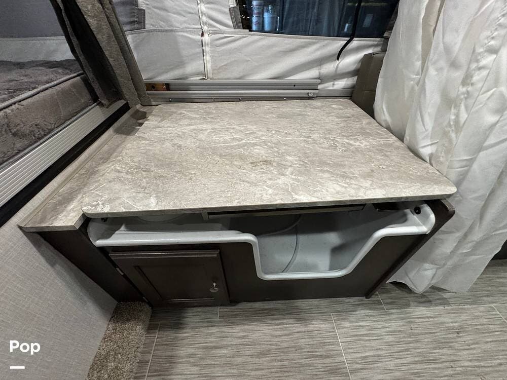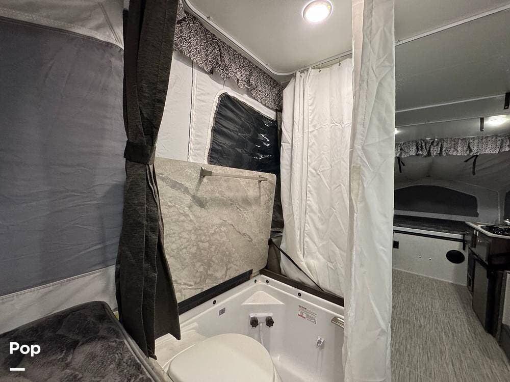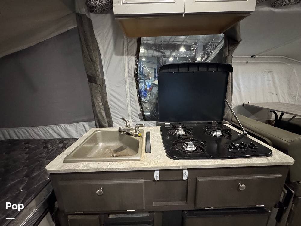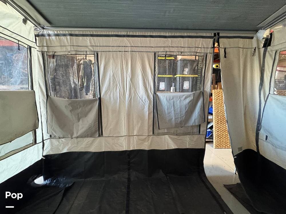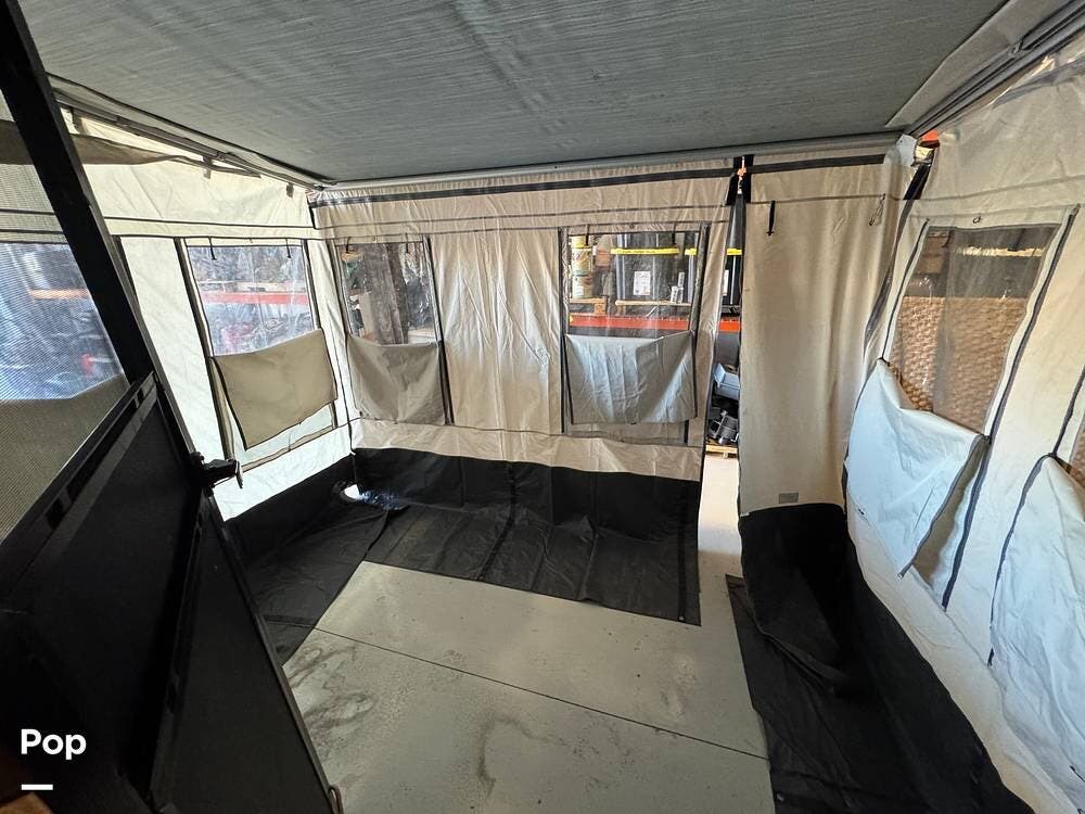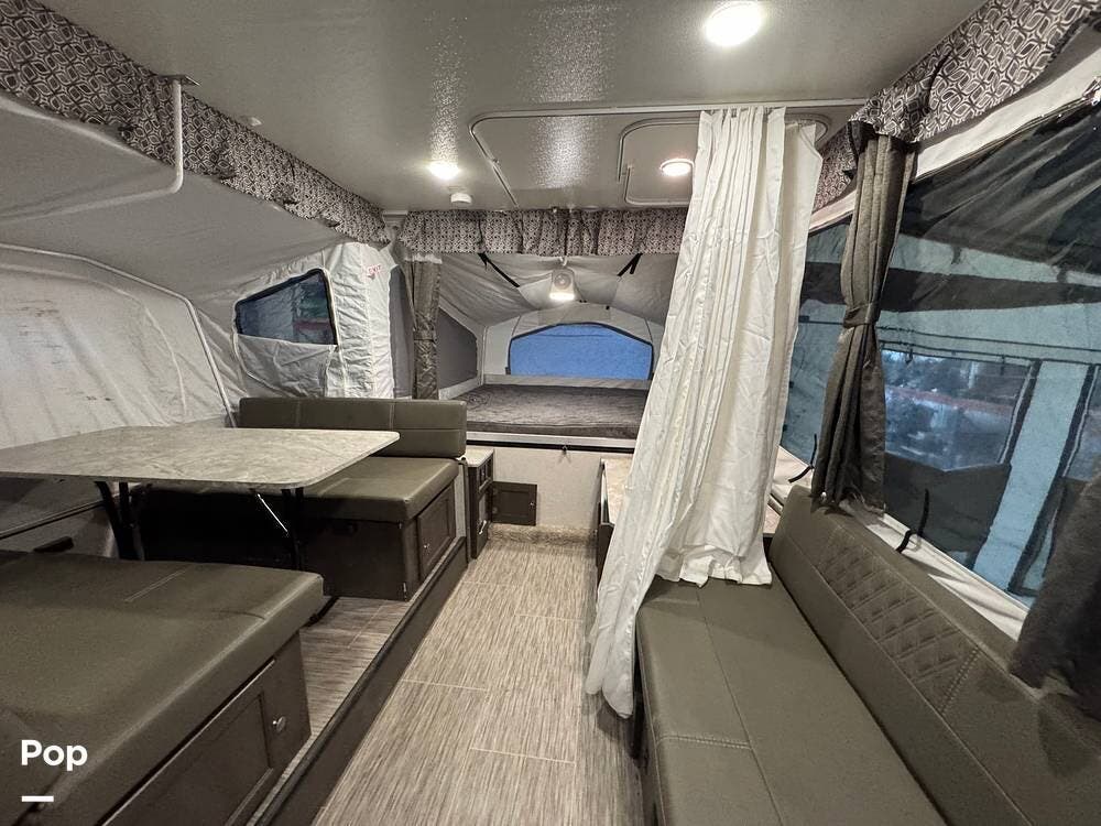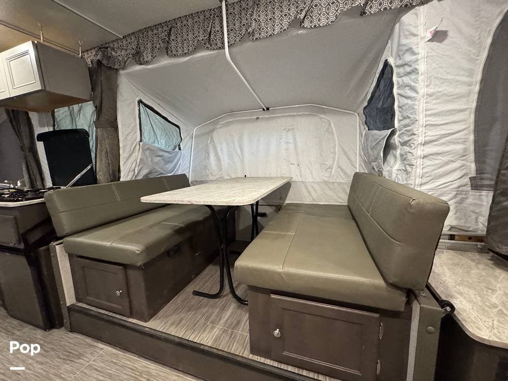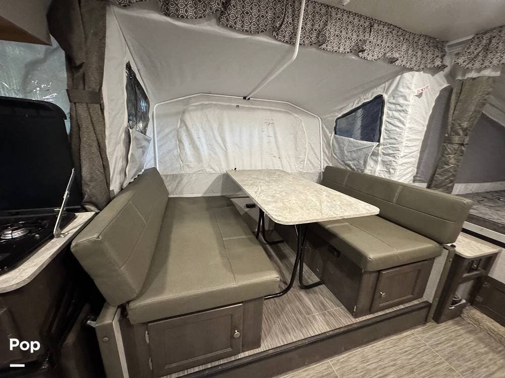 Inside the Flagstaff SE 23SCSE folding pop-up camper by Forest River, you will find a single slide-out, a shower/porta-potty cassette, and plenty of storage.