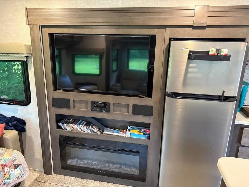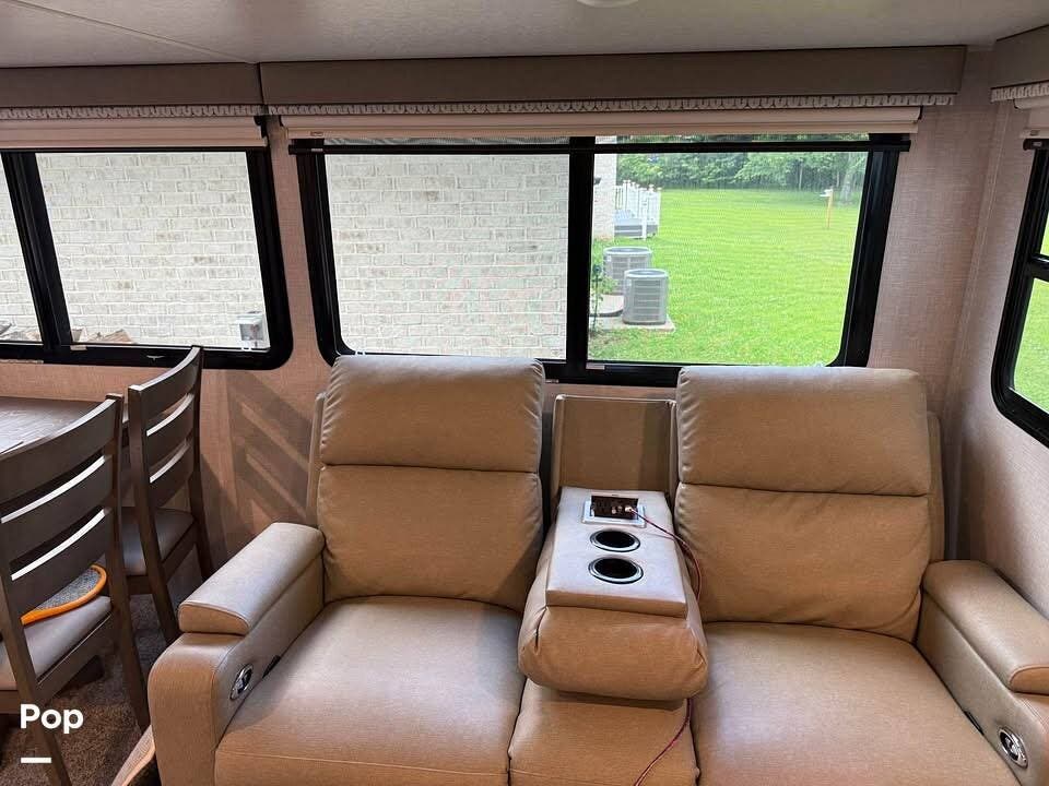 This camper features spacious living space, stadium style recliners, and a fireplace for your pleasure.