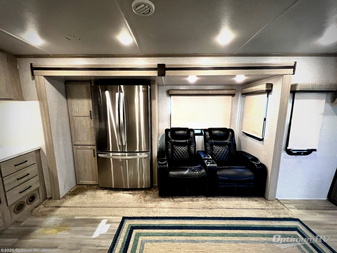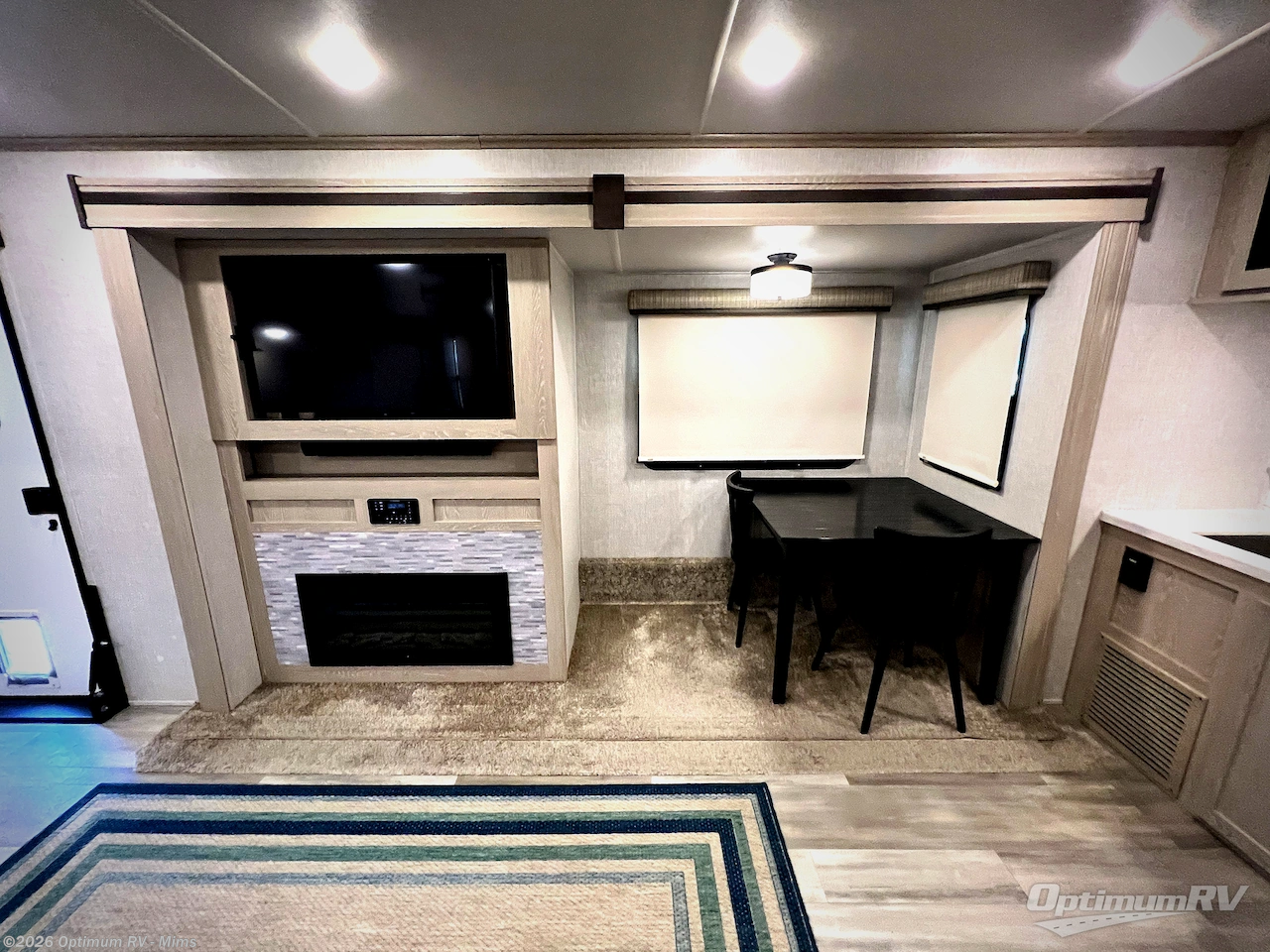 Whether you enjoy cooking indoors or outdoors while camping, this trailer allows you both choices each meal! Choose from the rear kitchen or the outdoor kitchen, and dine at the 44" booth dinette or under one of the two power awnings. After dinner you can relax on the 60" theater seats or the 60" hide-a-bed sofa while watching the LED TV and enjoying the glow of the fireplace. When it's time to turn in, you'll love the slide out king bed in the front master bedroom and the convenient dual entry bath can be accessed from the bedroom or the hallway. You might even like to add a few options such as a washer/dryer, a bedroom TV, and/or a bike rack ladder attachment so you can hit the trails!