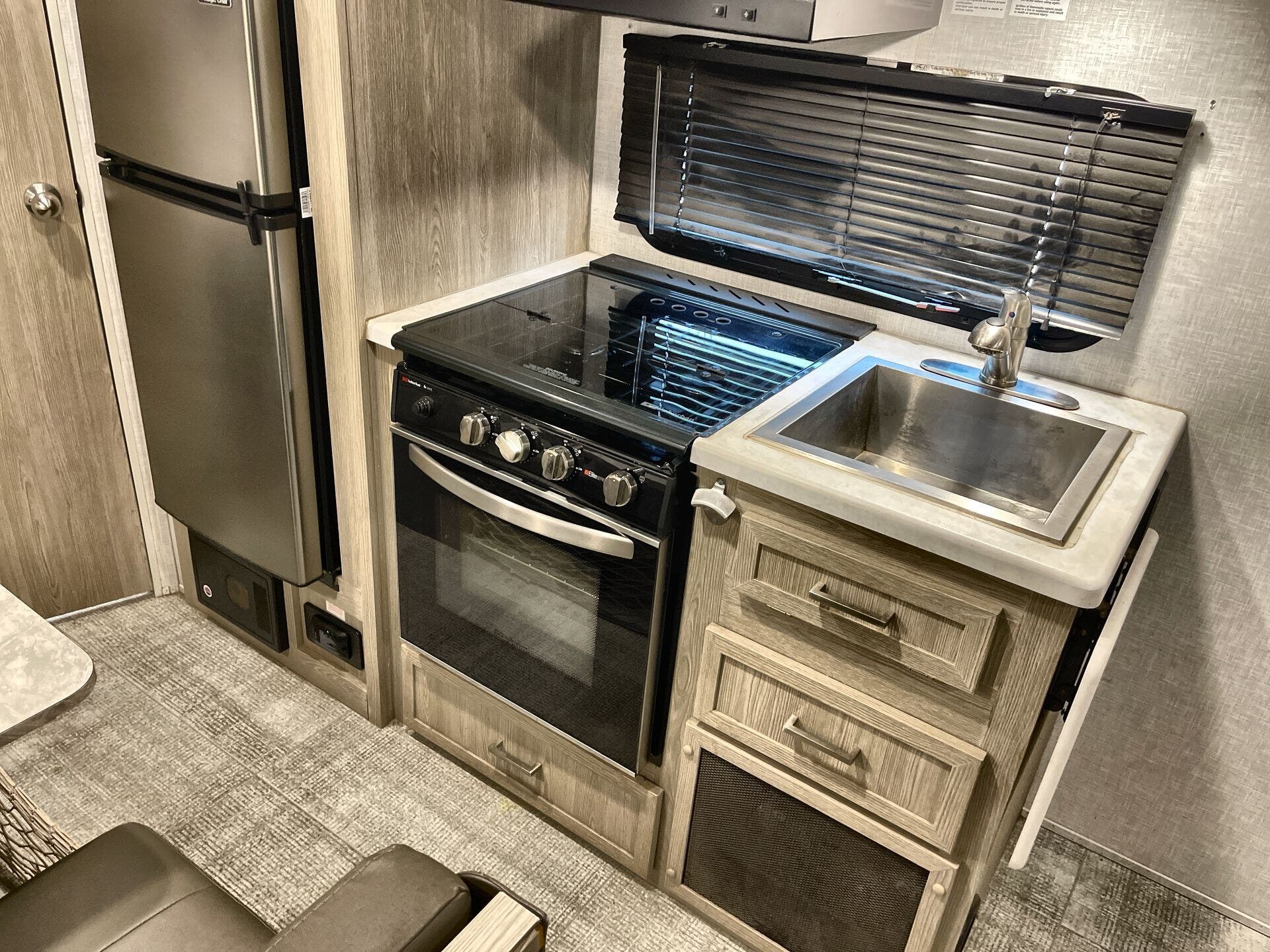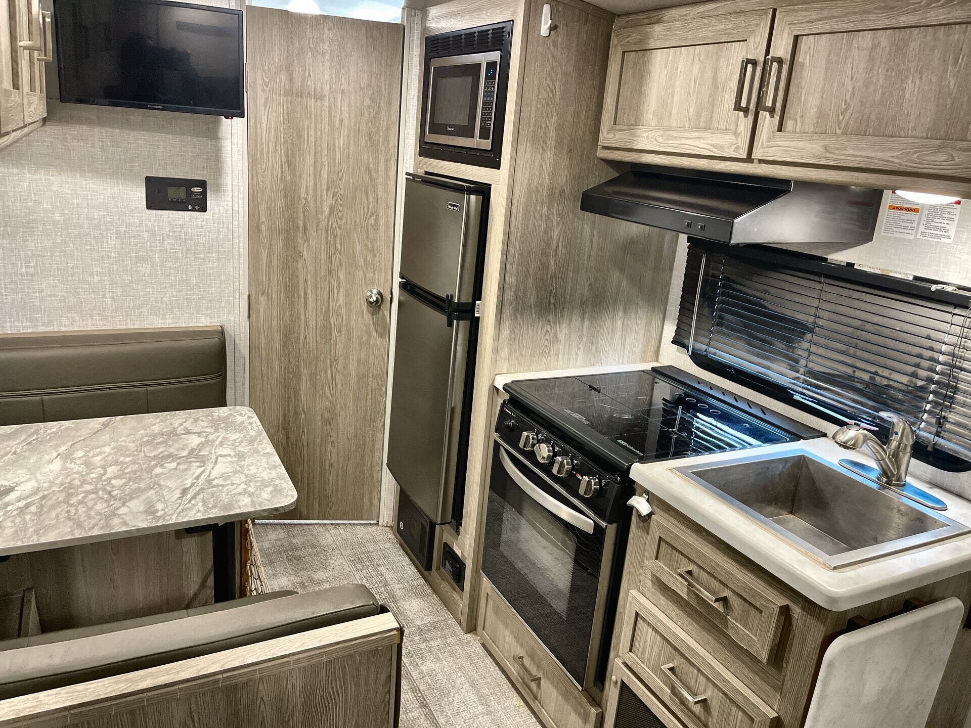 This 2021 Forest River Flagstaff E PRO 19FD is an RV everyone will love. Be a part of the Forest River family with this 2021 Forest River Flagstaff E PRO 19FD. The sleep capacity allows you to bring up to 3 along on your travels in this rig. Entertain or cook up a cozy meal just for you in this RV kitchen equipped with the fridge, oven, stove. Spend time together in the living area with the TV. The queen bed makes it a perfect camper for couples. Keep a comfortable temperature inside your rig with the A/C option. The 31 gallon fresh water tank is just right for easy RV traveling. The exterior features make camping a breeze, such as awning, ladder and leveling jacks.
