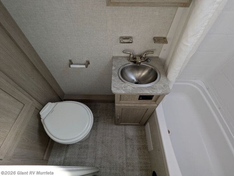 - Rear Full Bathroom: Includes a shower, toilet, and sink with a skylight for added comfort.