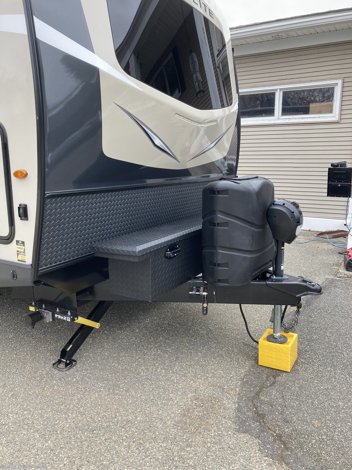 30" tongue to bumper 26 ft box. 2 42' slides. Powerful Solar system 2 190 watt panels controller 3000 watt sine wave inverter charger 2 200 amp hour batteries, fopr boondocking at state parks. Dry W 66608 lbs. GVW 8776lbs H20 60 Gal. BW 45 Gal Grey W 90 gal gas Fur 35000 Btu gas EL WH 13500 Btu AC 15000 Btu Gas EL fridge freezer 2 tvs weight distribution hitch. Stored indoors and covered every year. Front kitchen. rear bedroom with queen bed. El stabilizers front and back. El jack. Gas Griddle plugs into gas system. El 5000 Btu fire place. Theater recliners. 12 volt house fan. Camper weight 6608lbs GVW 8796Lbs