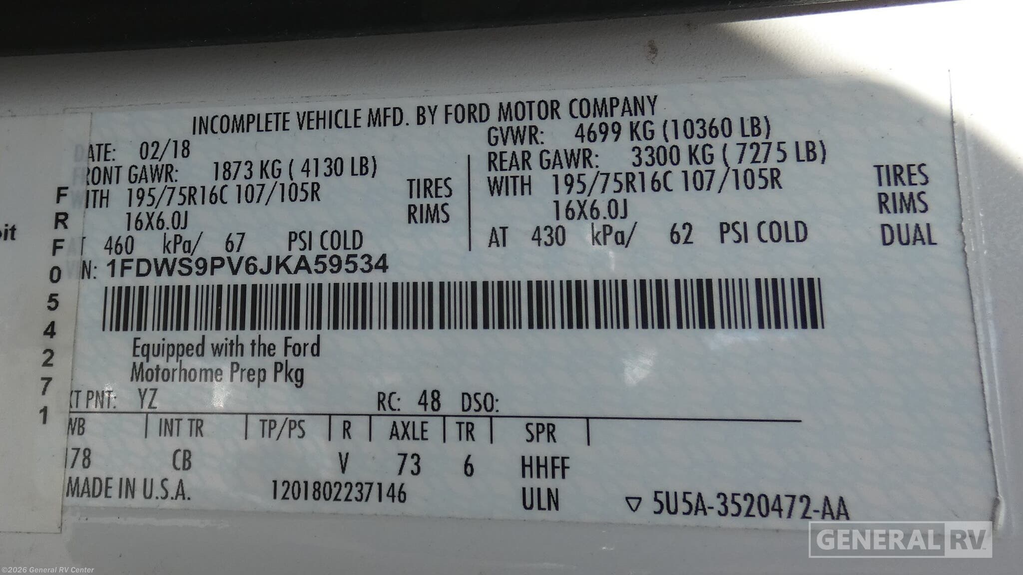 - VIN1FDWS9PV6JKA59534
