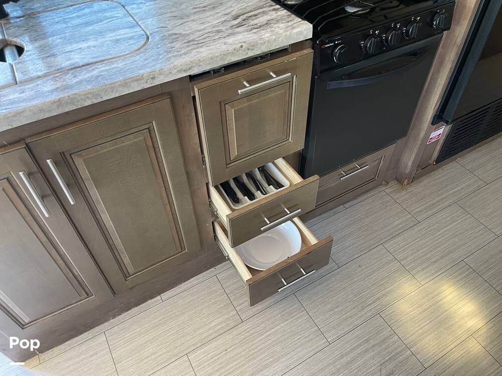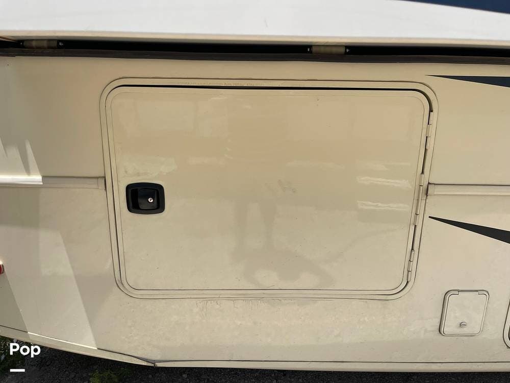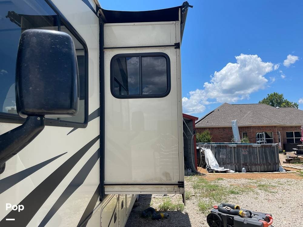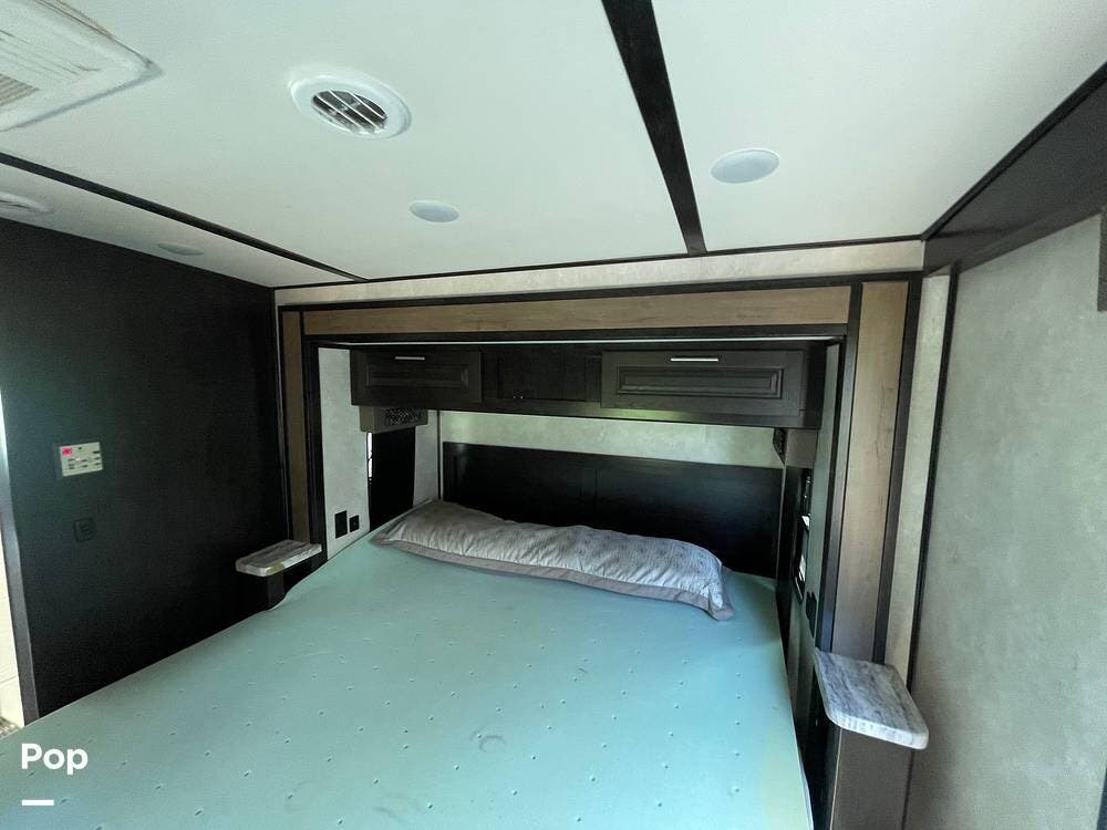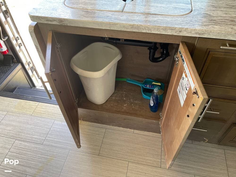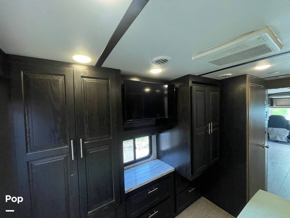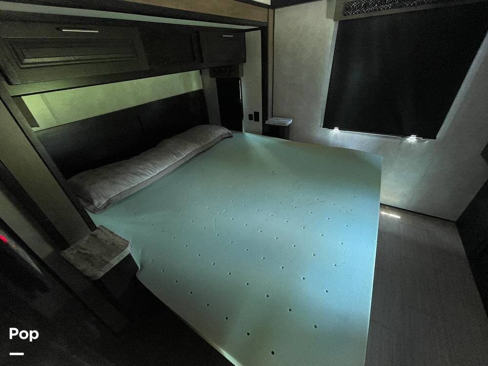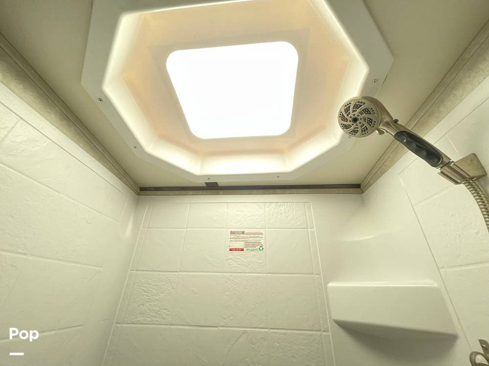 This unit features three flat-screen TVs, with one located on the exterior and equipped with a 17-foot power awning, perfect for enjoying a great evening meal with family and friends while watching a game or movie.