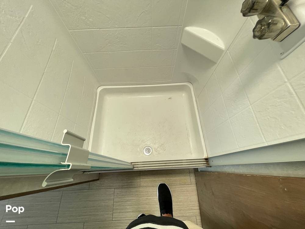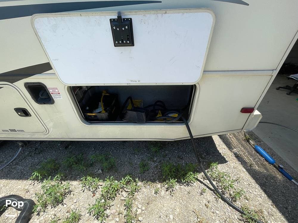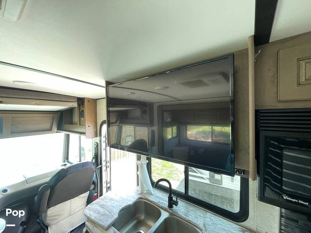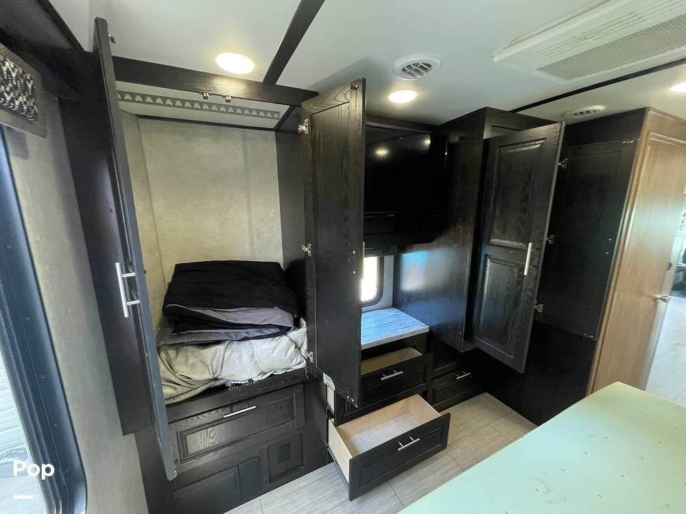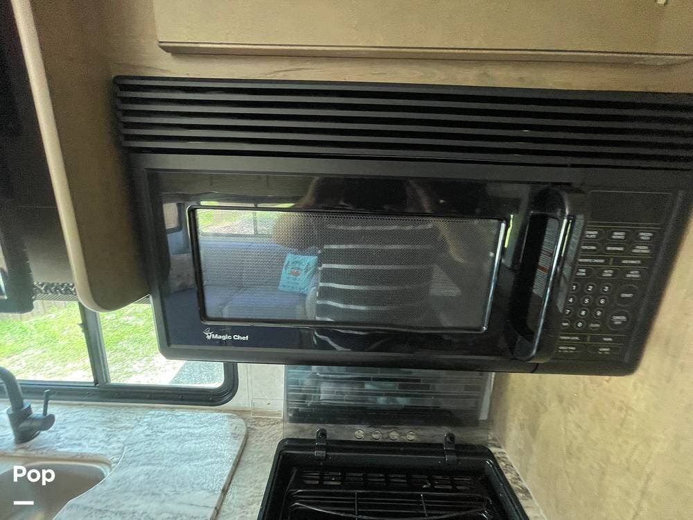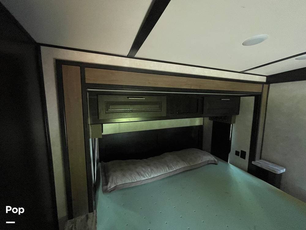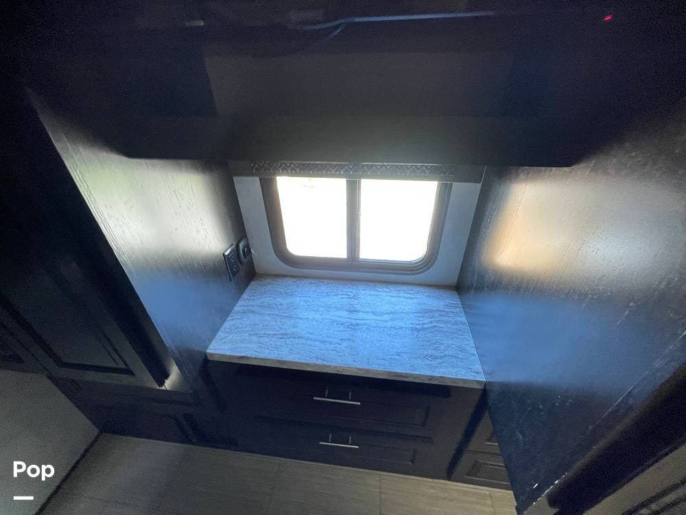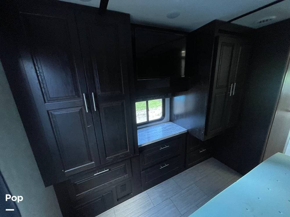 This unit features three flat-screen TVs, with one located on the exterior and equipped with a 17-foot power awning, perfect for enjoying a great evening meal with family and friends while watching a game or movie.