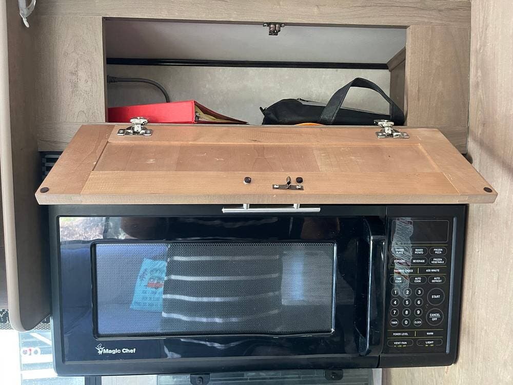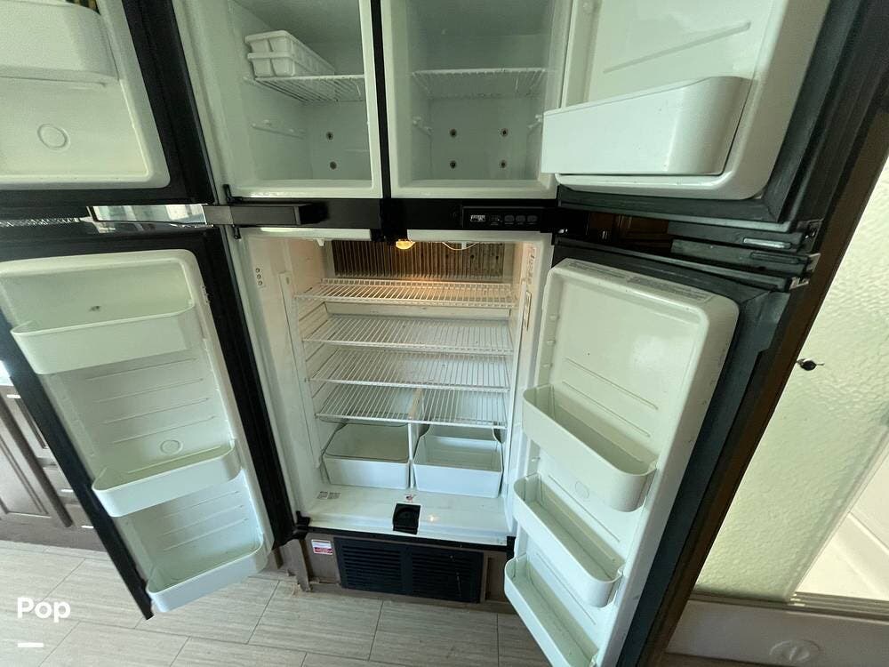 This FR3 features a 3-burner stove in the kitchen, an oven, a microwave, and a huge 4-door gas and electric refrigerator freezer.