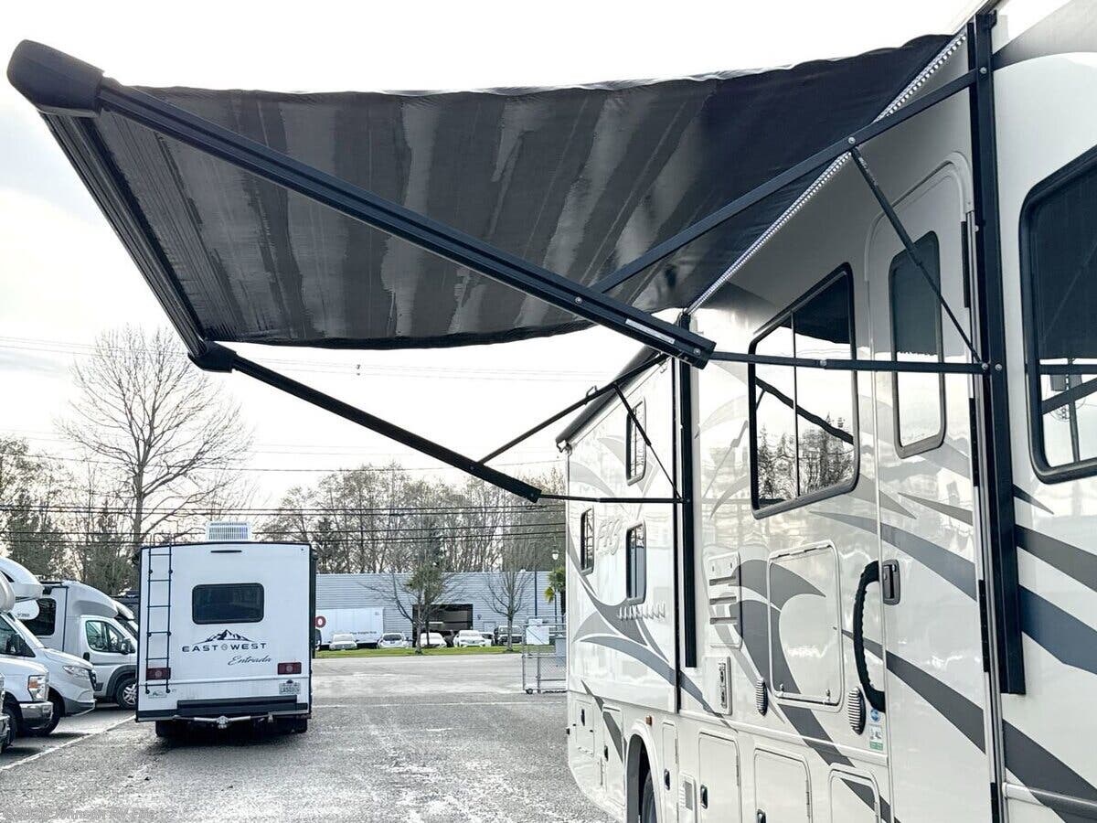 Features Include: 110v and 12v Outlets, LED Map Lights, Color Backup Monitor, Power Heated Mirrors, Bi LED Headlights, LED Turn Signals, Flush Floor Design, 7-Foot High Ceiling, Black Roller Shades, Pantry, Trash Can Storage, Custom Countertops, Stainless Steel Sink, 22-inch Oven, Systems Center, WiFi LTE Controller, Overbed Storage, Reading Lights, Storage Behind TV, Wardrobe, CPAP Prep, Stainless Steel Sink, Black Trough Faucet, Linen Storage, Manual Keyless Start, PureSine Inverter, 50-Amp Service Cord, Charge Wizard, 35k Furnace, Black Tank Flush, Steel Cockpit Cage, Fiberglass Exterior, Fiberglass Front Cap, Slide Topper Awnings