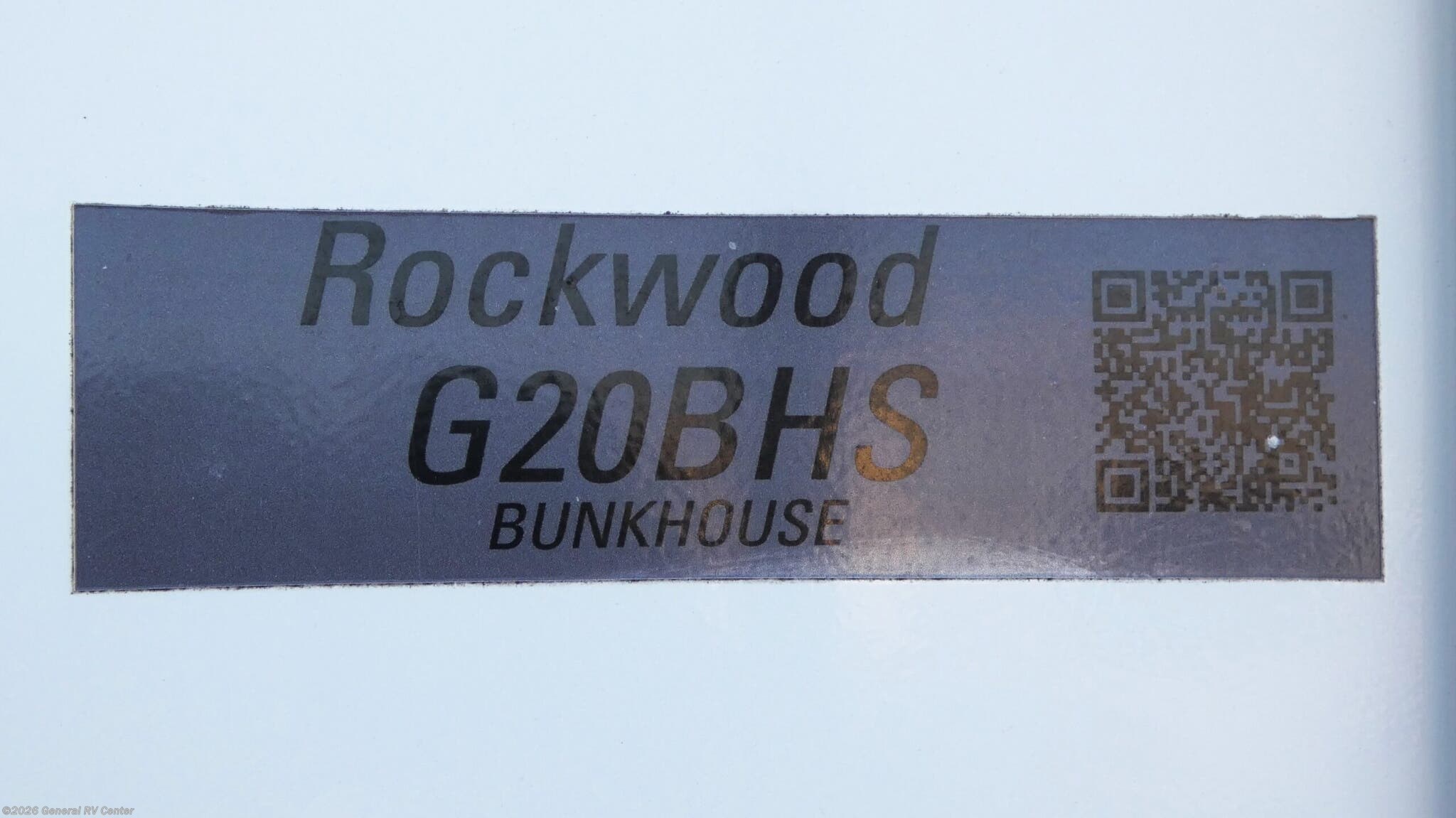 **Rockwood Geo Pro 20BHS ** A lightweight, family-friendly travel trailer built for easy towing and efficient use of space. The 20BHS features a bunkhouse layout, a slide-out dinette and a well-equipped kitchen, making it a great option for small families or couples who want comfort in a compact footprint. Highlights - Family-oriented floorplan with rear bunk beds and a front full-size bed. - Slide-out dinette for added interior space and extra sleeping capacity. - Lightweight build suitable for many SUVs and mid-size trucks. - Full bathroom plus a functional kitchen with indoor and outdoor cooking options. - Power awning and exterior storage, enhancing outdoor living and gear capacity.