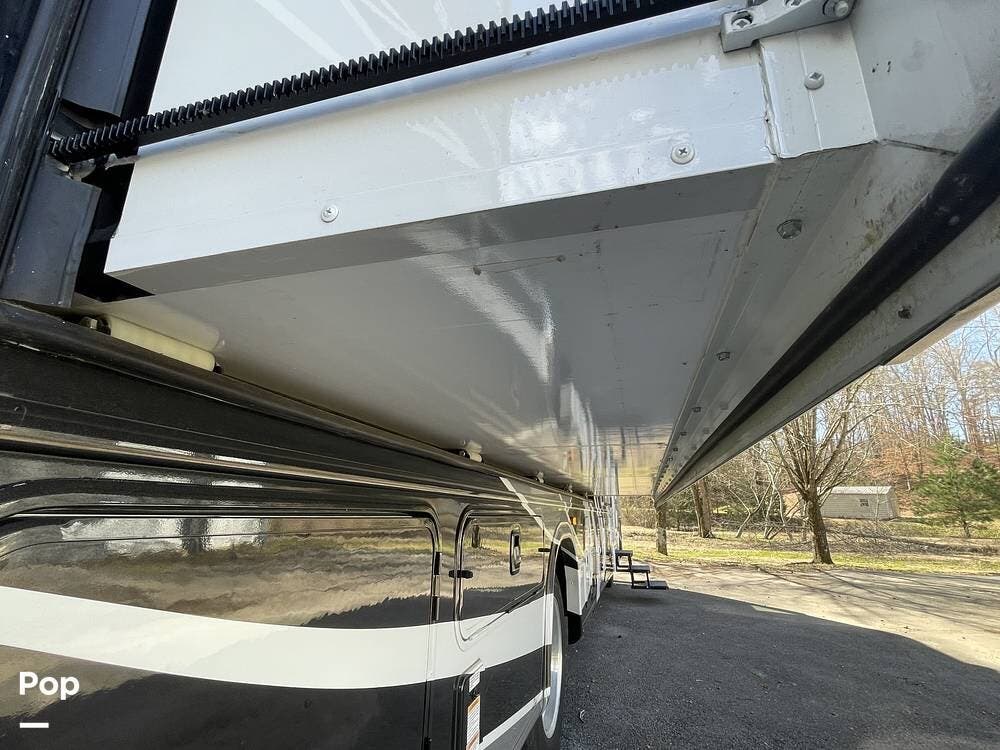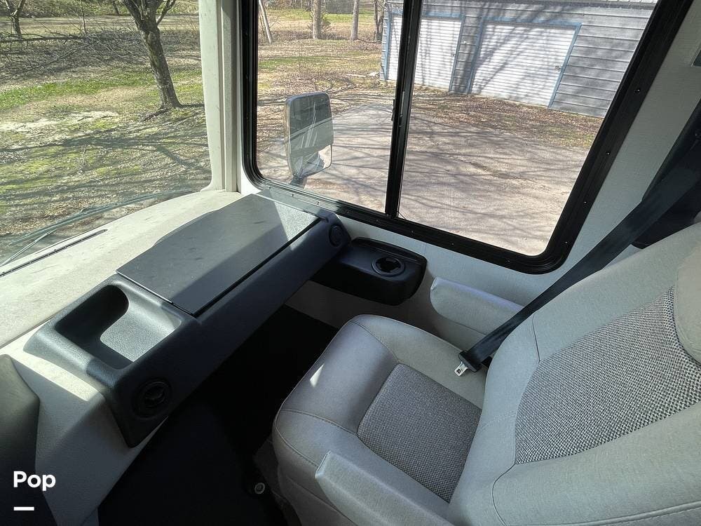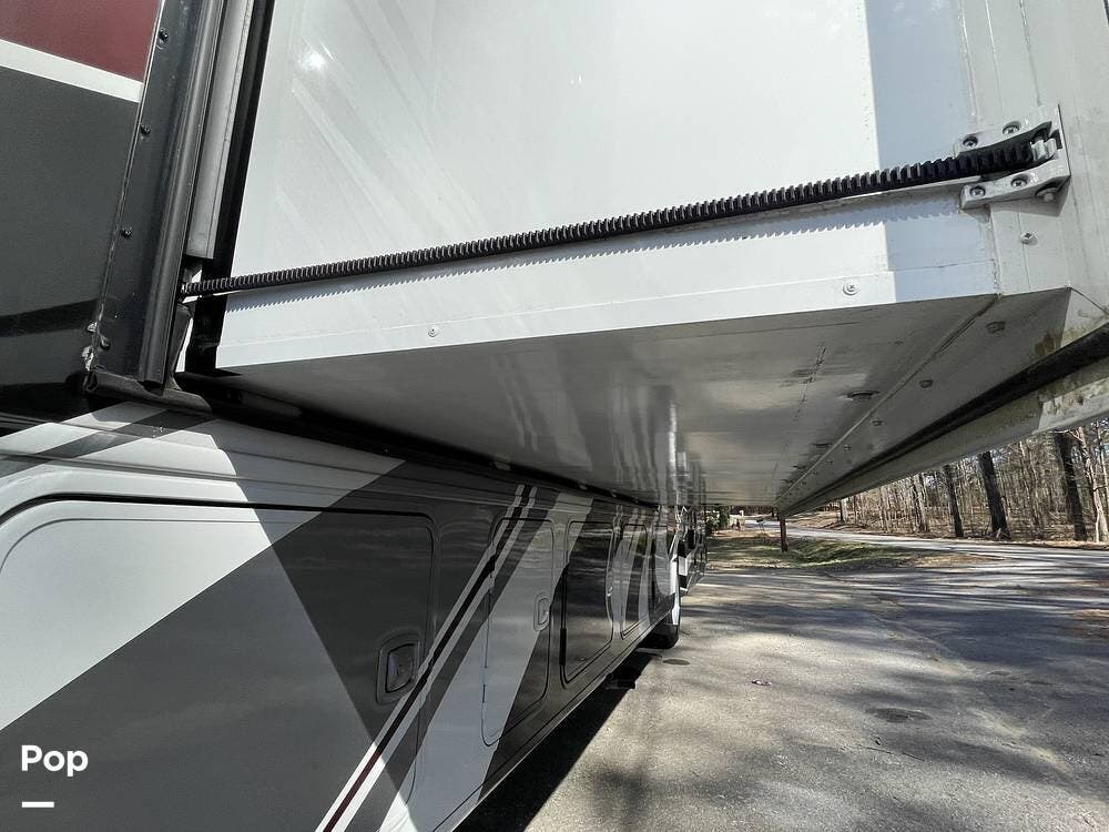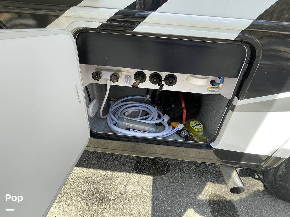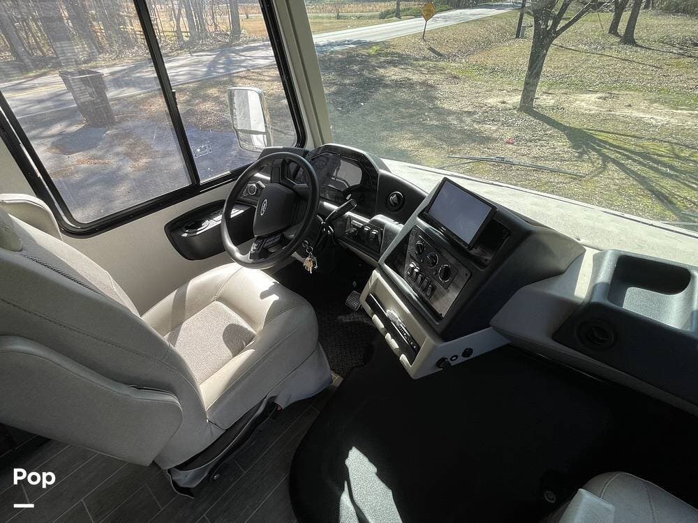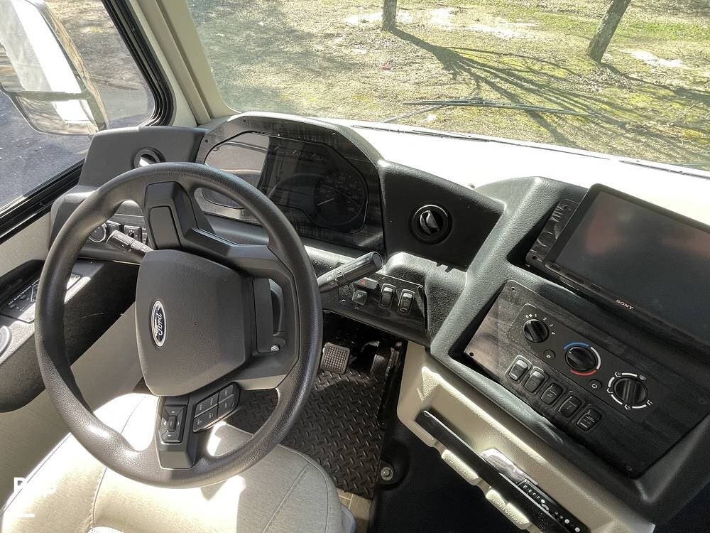 Additional features of this motorhome include multiple slide-outs, which significantly expand the living space when parked, providing a more open and comfortable environment. The automatic leveling system ensures quick and hassle-free setup at any campsite, while the large awning provides shade and protection from the elements. Plenty of exterior storage compartments allow you to bring along all your outdoor gear, from camping chairs to fishing equipment and everything in between.