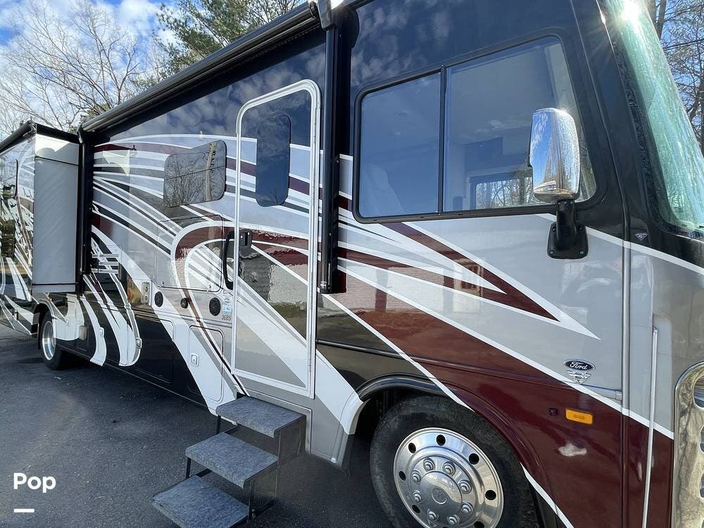 Under the hood, this impressive motorhome is powered by a robust 7.3L Triton V8 engine, delivering an impressive 350 horsepower. This powerhouse ensures smooth and reliable performance on highways and winding roads alike. The 5,000-lb towing capacity allows you to bring along an extra vehicle, boat, or trailer, adding even more versatility to your travels. With very low miles on the odometer, this well-maintained RV is ready for countless adventures ahead.