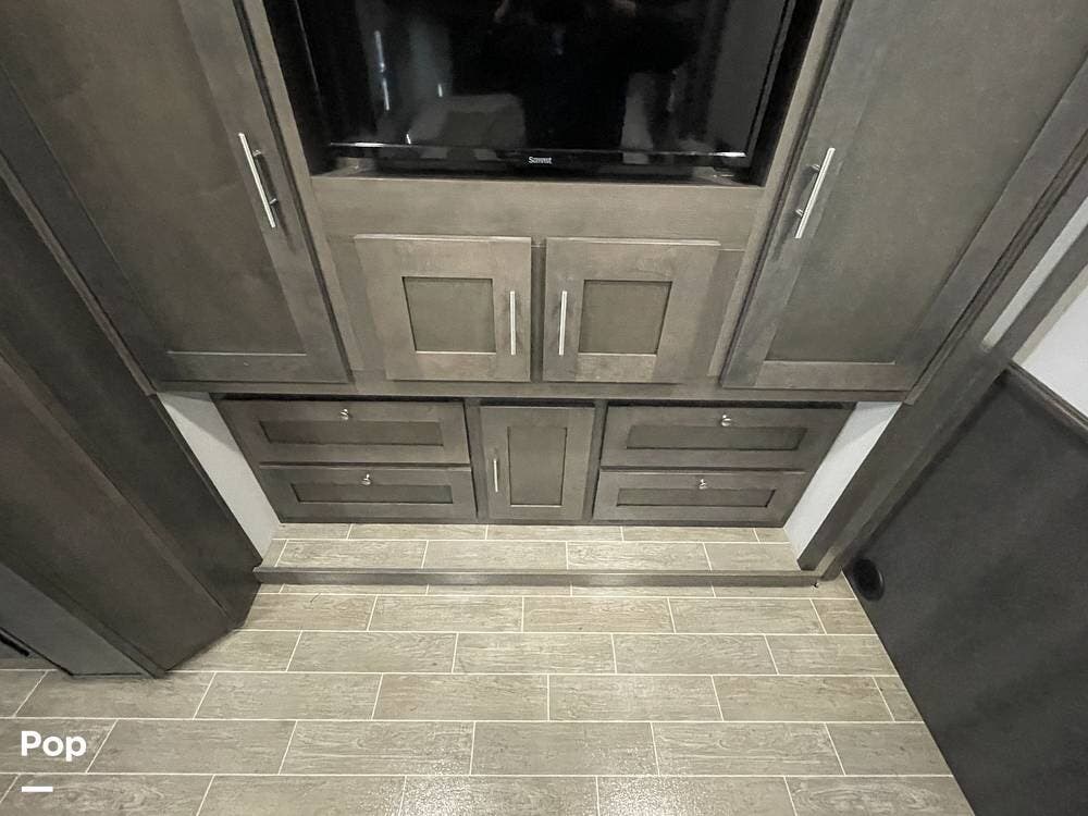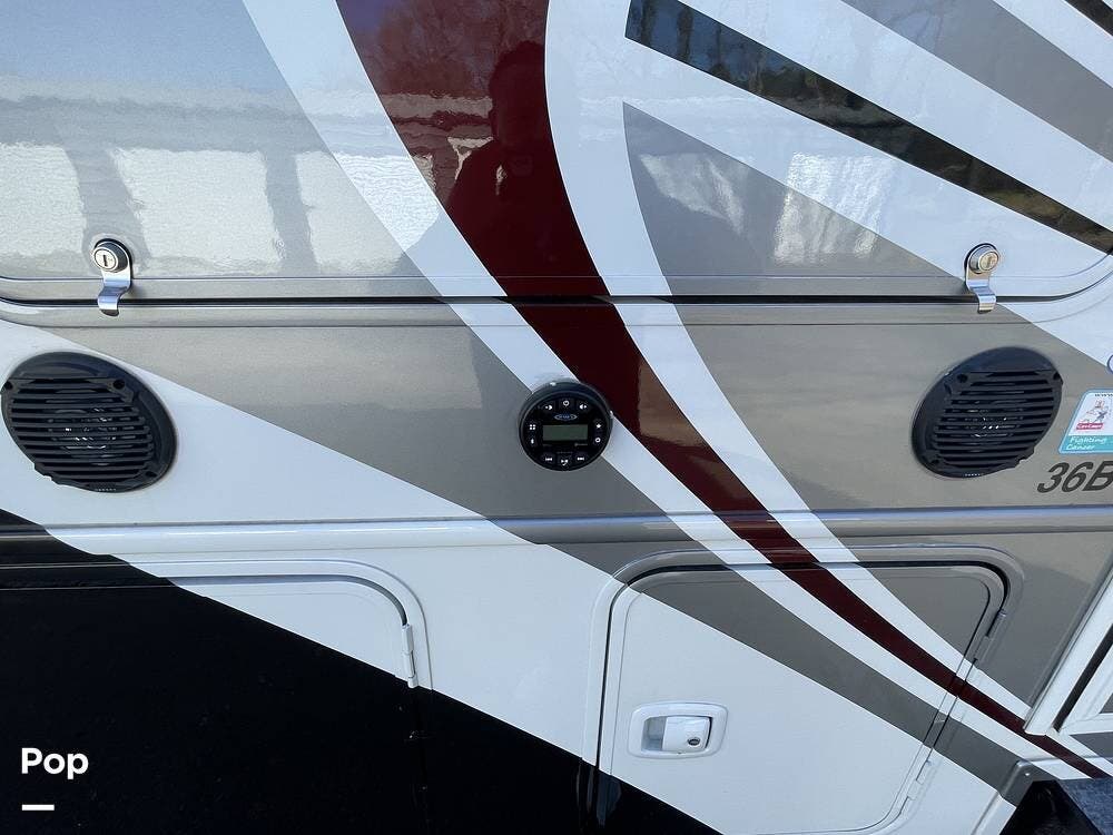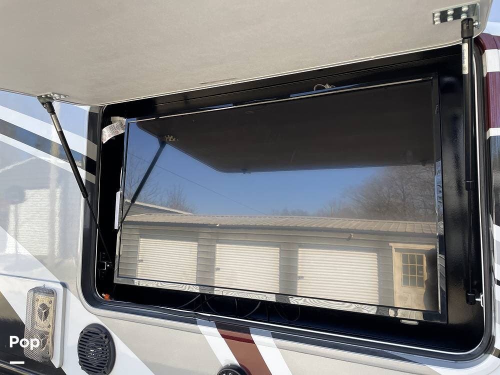 Entertainment is a priority in the Georgetown 36B5, with multiple options for relaxation and enjoyment. The living area features a large TV, perfect for movie nights or catching up on your favorite shows. For those who love spending time outdoors, this motorhome includes an exterior TV, allowing you to enjoy your favorite entertainment under the stars. Whether you're tailgating, hosting an outdoor movie night, or simply relaxing with a drink in hand, this feature adds an extra level of enjoyment to your outdoor adventures.