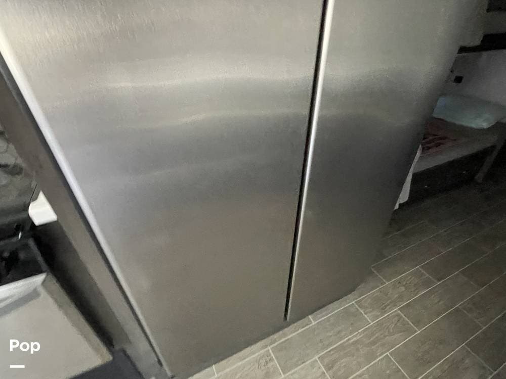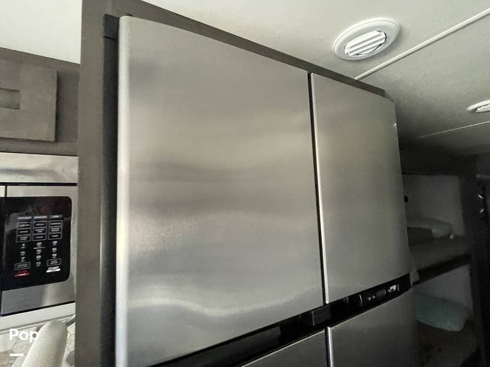 Cooking on the road has never been easier, thanks to the well-equipped kitchen in this motorhome. The stove/oven combo allows for easy meal preparation, whether you're making a quick breakfast or a gourmet dinner. The side-by-side refrigerator provides ample space for storing groceries, beverages, and snacks, while the microwave offers added convenience for heating up meals on the go. The double stainless steel sink makes cleanup a breeze, and the solid surface countertops provide plenty of workspace for meal prep. With plenty of cabinetry for storage, you'll have no trouble keeping your kitchen organized and stocked with all the essentials.