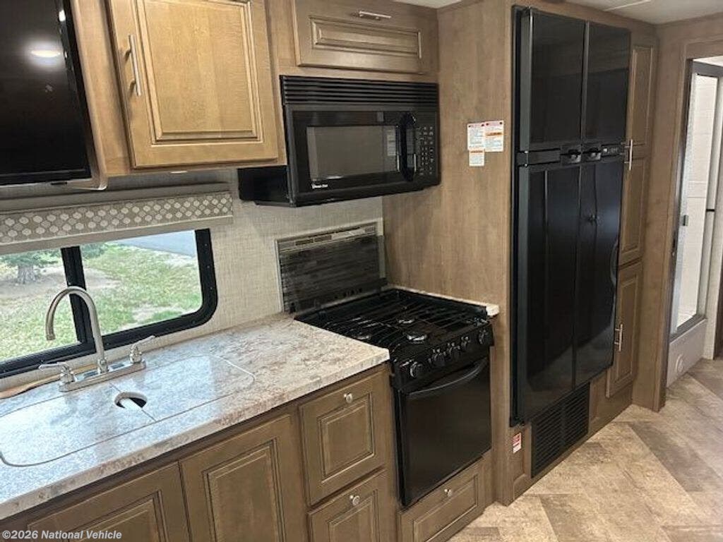 Outside, enjoy a power awning, pass-through storage, and a 5,000 lb towing capacity, giving you the flexibility to bring along a vehicle or extra gear.