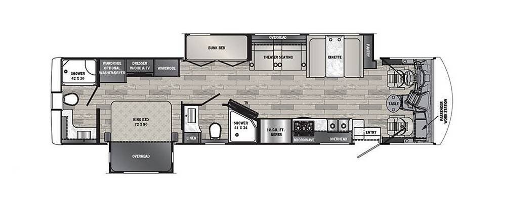 Other features include full body paint, a stacked washer-dryer, solar, and smart TVs.