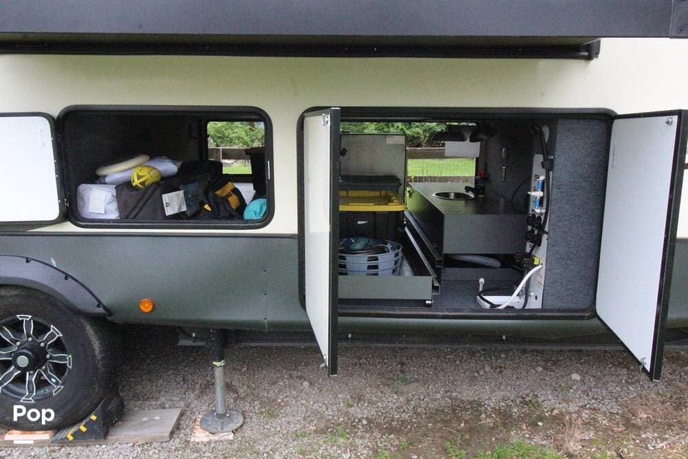 Full-timers and extended travelers will have plenty of space and storage, and campers looking to make it a getaway spot at their favorite campground will love the outdoor kitchen and TV!