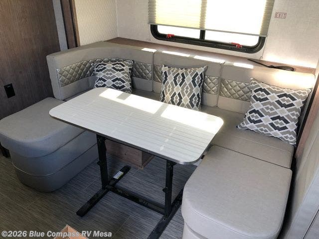 Thank you for visiting Tom's Camperland. Please call 480-894-1267, email or stop by for a tour! JBL Portable Bluetooth Speaker Complete Interior/Exterior LED Lighting Package LED Entry Step Light 1000 Lumen Amber/White Scare Light Metropolitan Grey Lightweight-Ply Countertops Stainless Steel Utility Hooks Bottle Opener Black Satin Faucet/Door Pulls (where applicable) High Performance Vinyl Furniture 2-Burner Glass Recessed Cook Top Black Stainless Steel Sink (where applicable) Pleated Shades USB Charging Station Lamilux 1000 Fiberglass Exterior Featuring Satin Matte Graphics Custom Front Fiberglass Protective Shell Featuring Tempered Seamless Panoramic Window Roof Mounted Solar Prep 13.5 BTU Low Profile Air Conditioning Power Awning Rear Ladder Azdel Exterior Construction